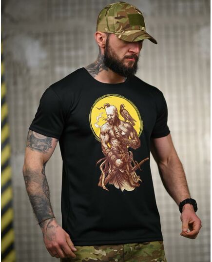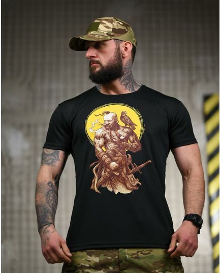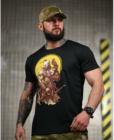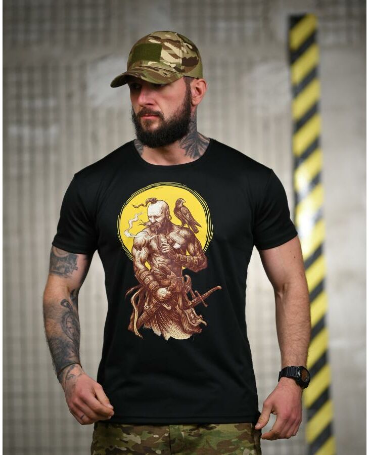 Тактическая потоотводящая футболка Козак черная ПП7613