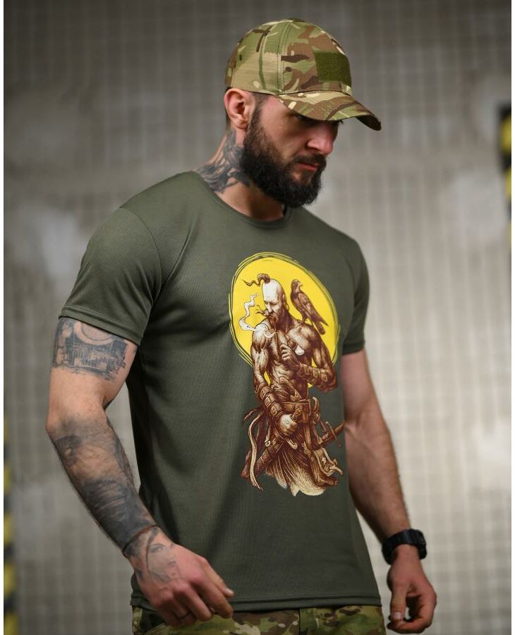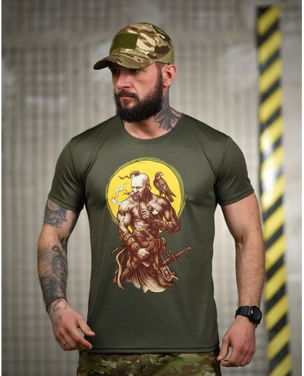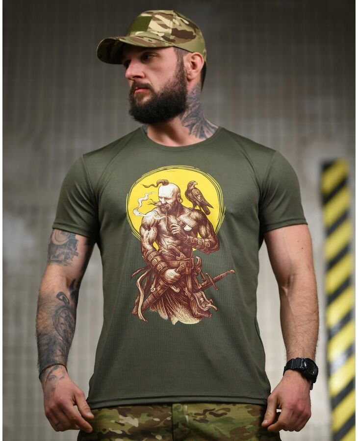 Тактическая потоотводящая футболка Козак олива ПП7614