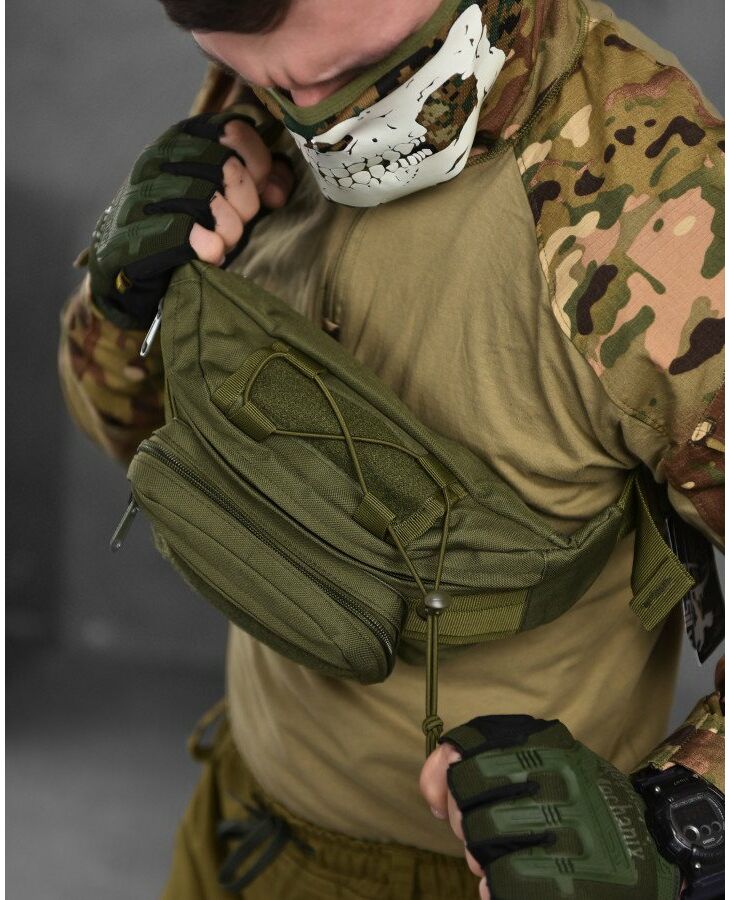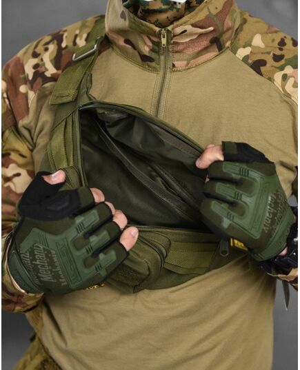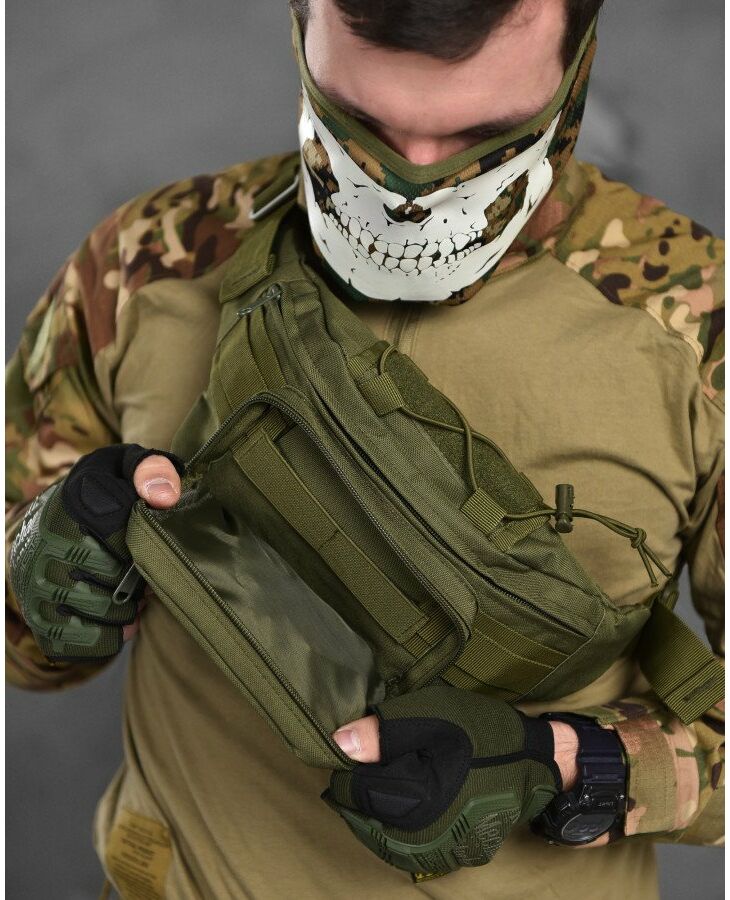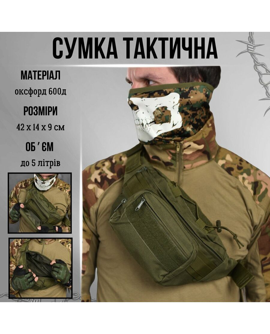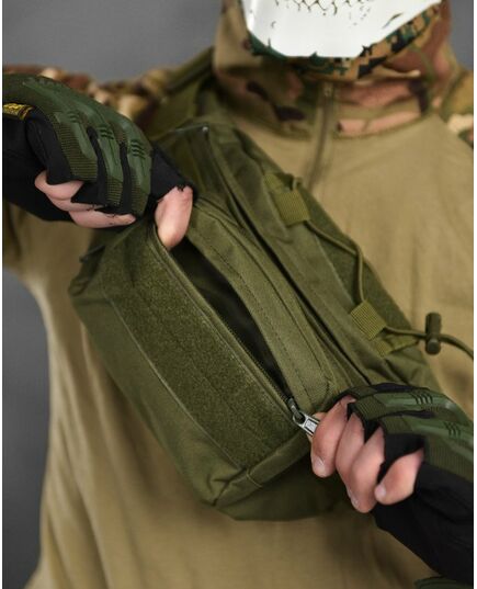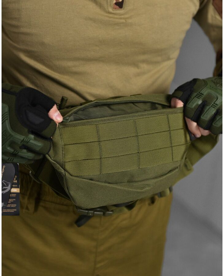 - Тактическая сумка изготовлена из прочного синтетического материала.
