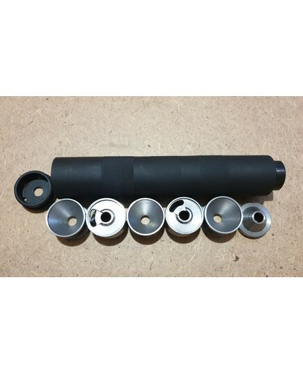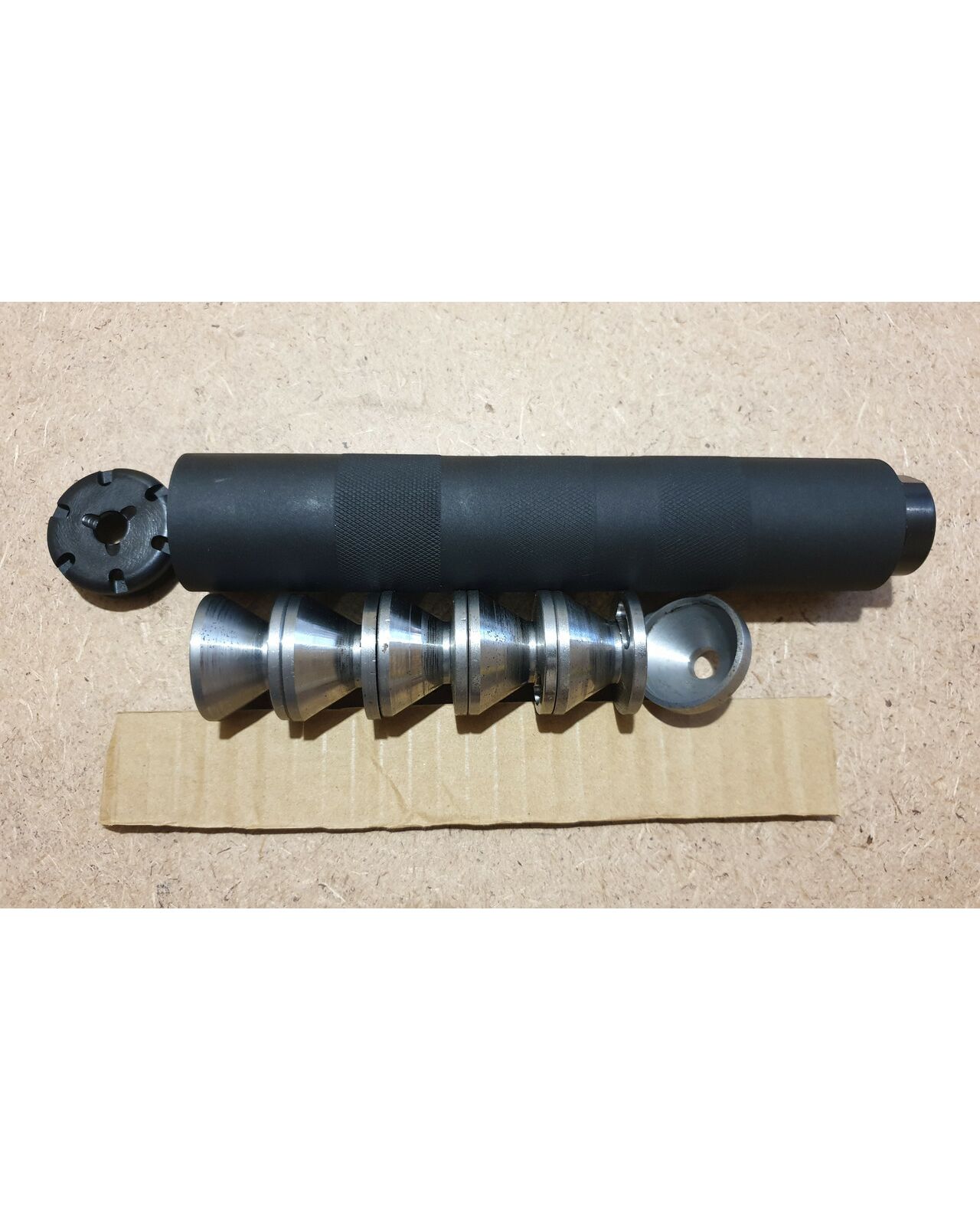 Глушитель 5.45 Корпус глушителя выполнен из цельнотянутой (безшовной) трубы, сталь 45. Диаметр 38мм Толщина стенки 2мм Начинка из 5 ти K-baffles и одной замыкающей тарелочки из стали 40х. Крышка может быть как цельная так и с отверстиями для сброса давления, ( на ваш выбор). Вес изделия 600грамм. Длинна 206мм