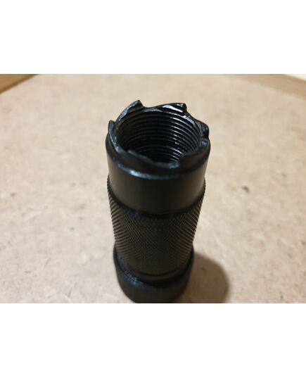 Вес изделия 200 грамм Вставка изготовленна из нержавеющей стали AISI304 Материал корпуса и гайки сталь 40х. Покрытие химокс. Больший диаметр 34мм. Длинна 85мм. Присоеденительный размер М24х1.5 Аналог стрела мини Пламегаситель к АК 5.45 Пламегаситель к автомату колашникова 5.45 Изготовитель Украина. Отличается от разных аналогов, отменным качеством изготовления. Имеет легкий вес и точность подогнаности деталей. Главной отличительной особенностью , что нравится всем обладателям сего девайса, является то, что конус изготовлен из нержавеющей стали, которая не так загрязняется при стрельбе и её легче чистить. А за счёт того что использованны разные виды стали, части небудут прикепать друг к другу.