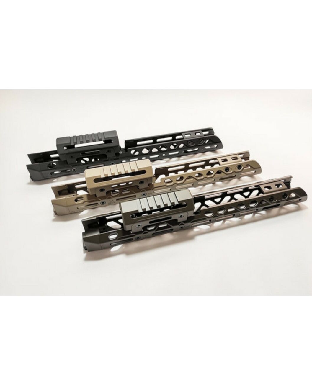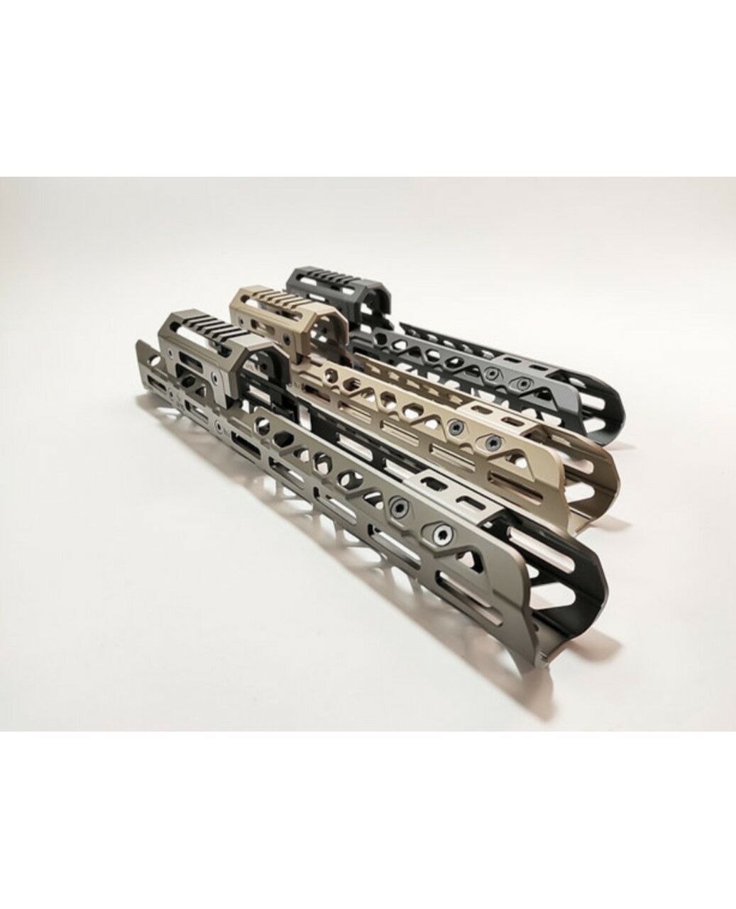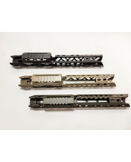 Жесткая алюминиевая конструкция.- Длина 360 мм.- Полный вес 420 грамм.- Интерфейс M-Lok для крепления аксессуаров- Установка на штатные посадочные места, поэтому ничего пилить не придется.- Возможно использовать как с родной газовой трубкой, так и с трубками других производителей. -В комплект входят и верхняя и нижняя части цевья. Нижнюю часть можно использовать по отдельности.Совместимость:- AКМ- АК-74 В черном цвете!