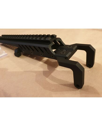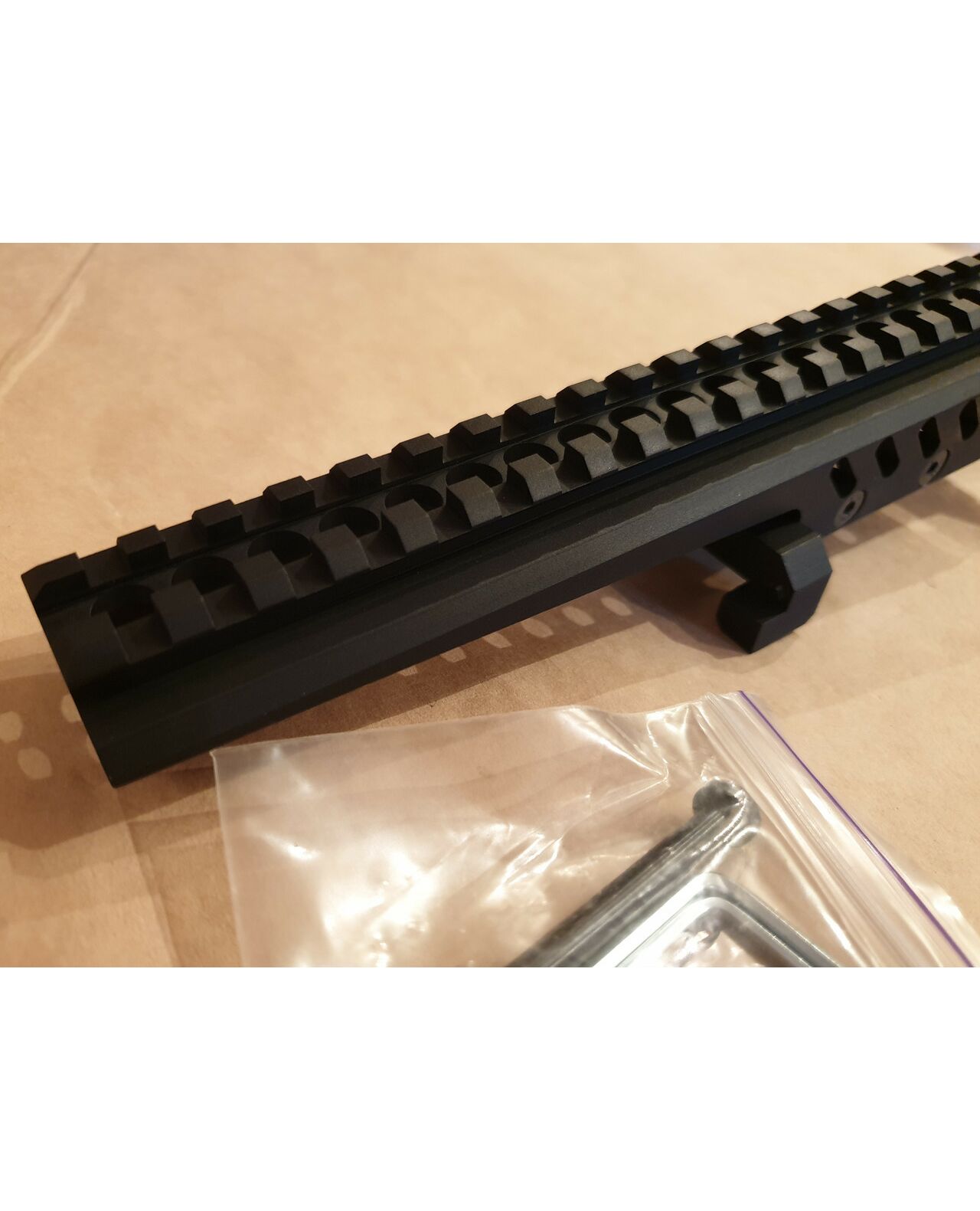 Кронштейн для оптики на крышку ПКМ. Материал – Авиационный алюминий. Длина рельса Пикатинни - 19 слотов. Благодаря жесткому креплению к колодке прицельной планки кронштейн подходит для установки коллиматорных, оптических, ночных и тяжелых тепловизионных прицелов.