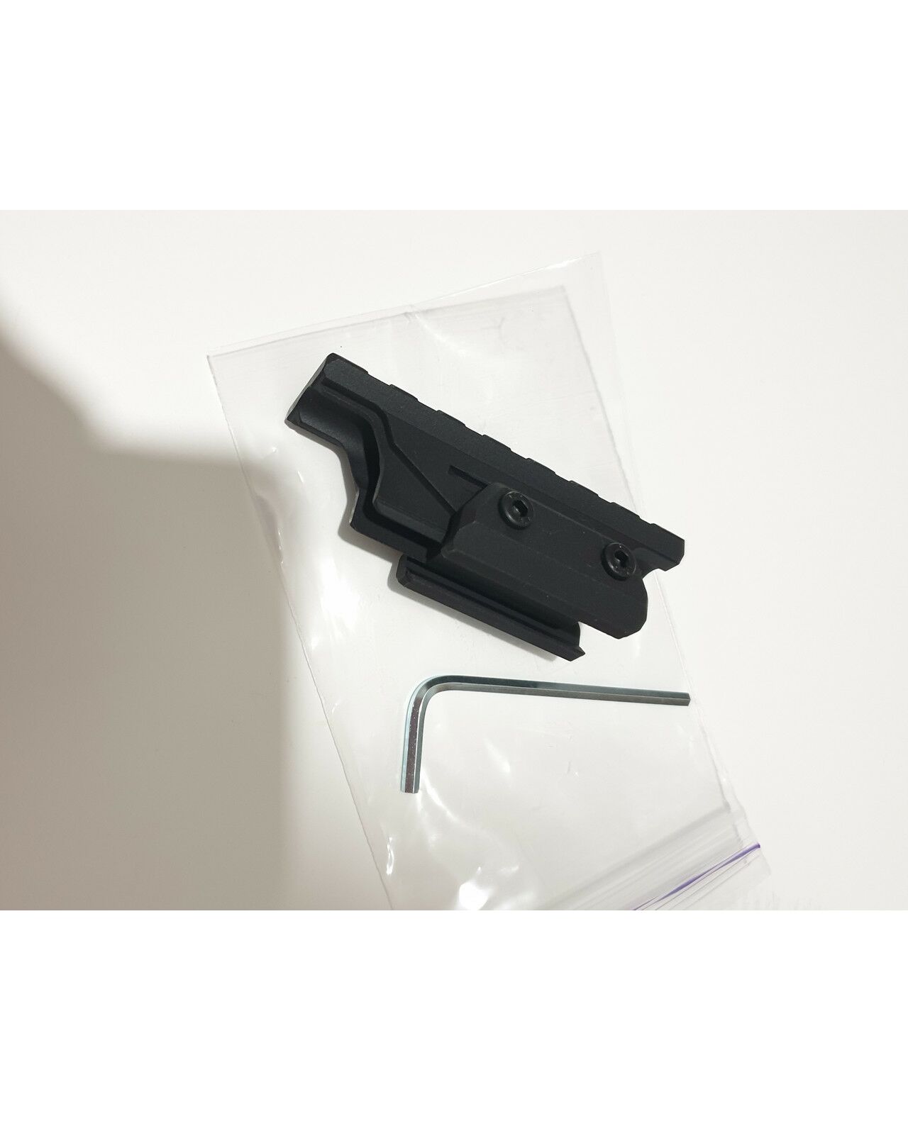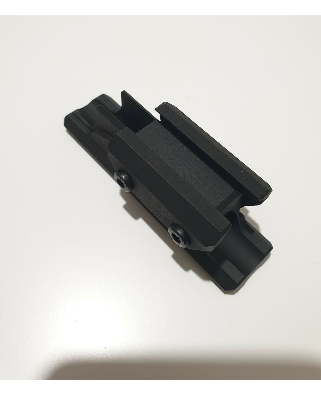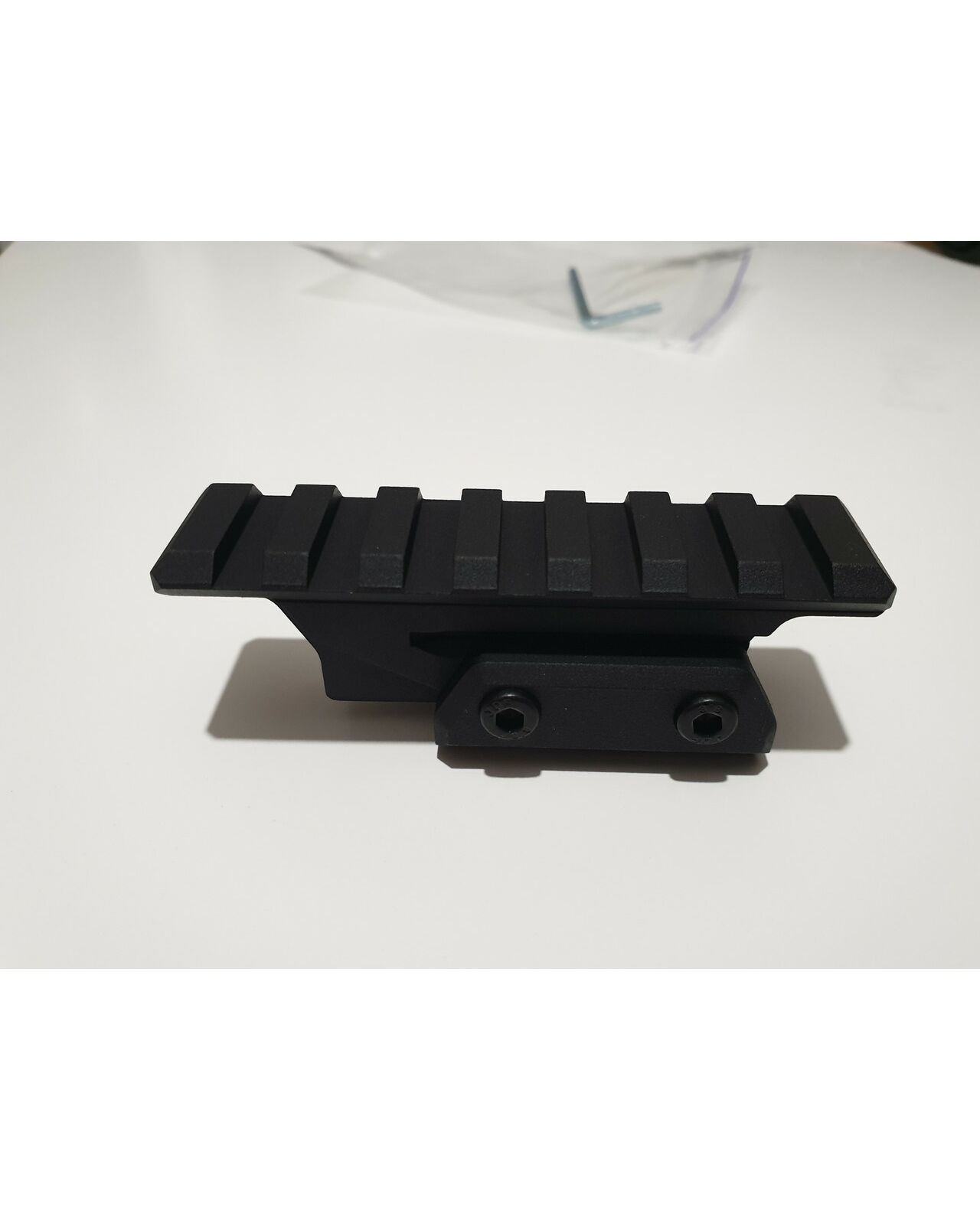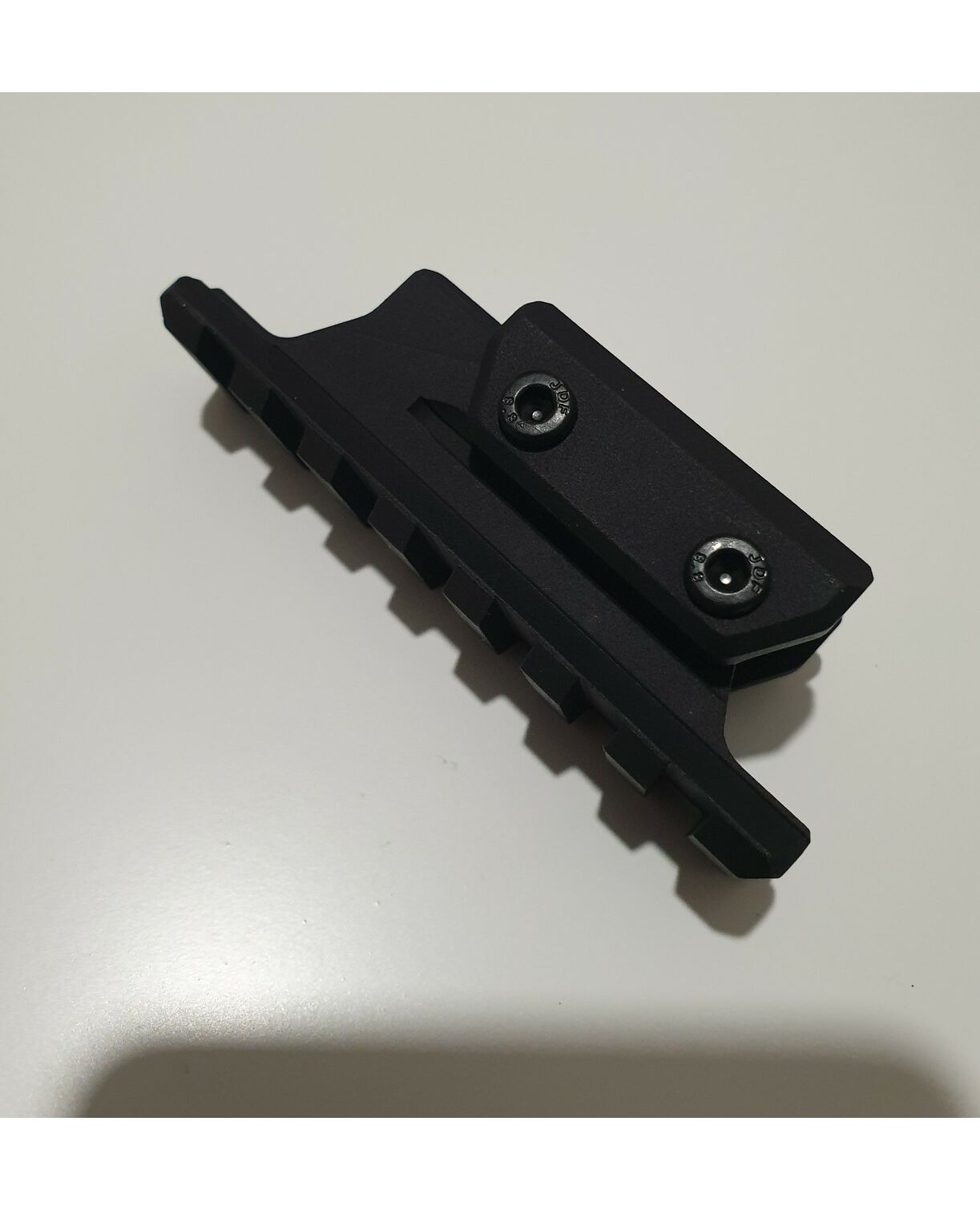 Быстросъемная планка пикатини для установки коллиматорных прицелов на АКСУ. Ставится по верх прицельной планки, путем надевания планки по верх целика и поджимания быстросъемными болтами для жёсткой фиксации. При установки не требуется снимать штатные прицельные приспособления!!! Изготовлена из авиационного алюминия д16т. Очень надёжное и простое решение для установки коллиматорных прицелов. Даже если что-то случится с коллиматорным прицелом и он выйдет из строя, вы в течении 15 секунд, быстро снимите планку вместе с коллиматорным прицелом и воспользуйтесь штатной механической прицельной планкой.