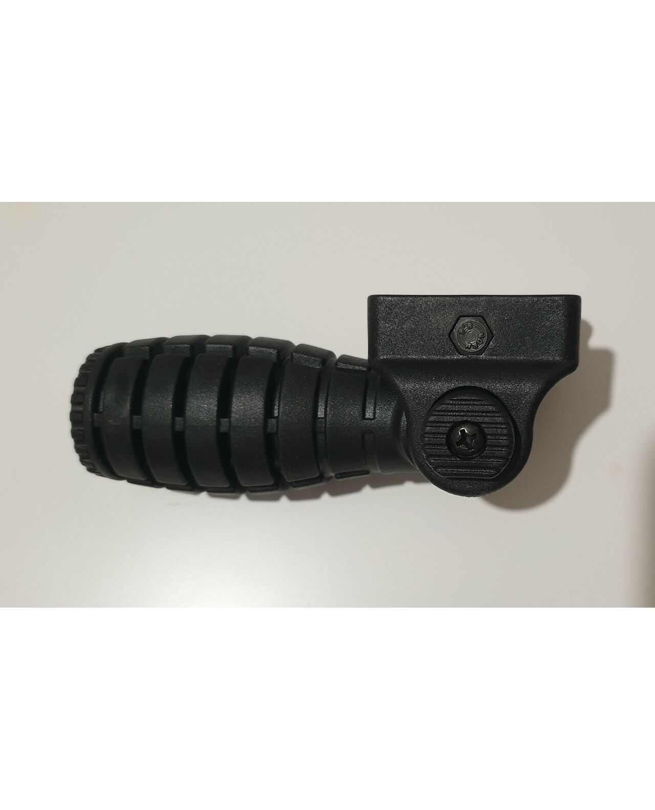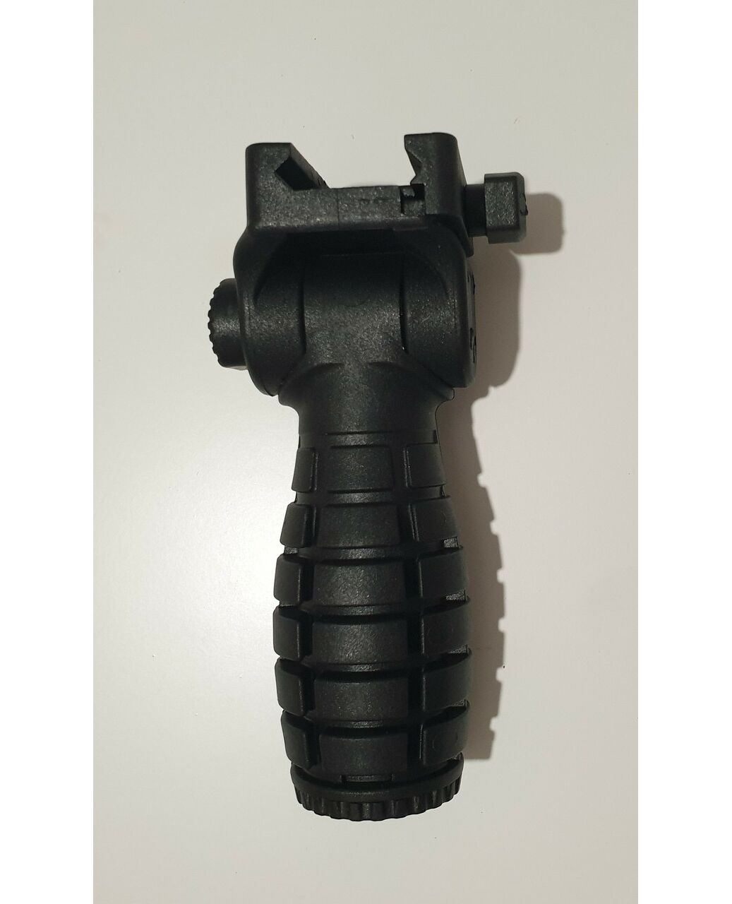 Складная ручка переноса огня для установки на планку пикатини. Благодаря складным свойствам ручки её можно использовать как уголок для удержания, а также как ручку. В сложенном состоянии прячется под цевье. С низу имеет контейнер для мелких вещей.