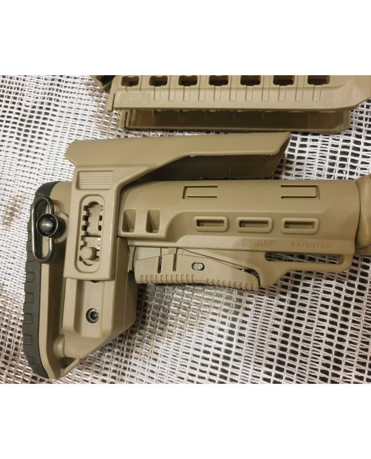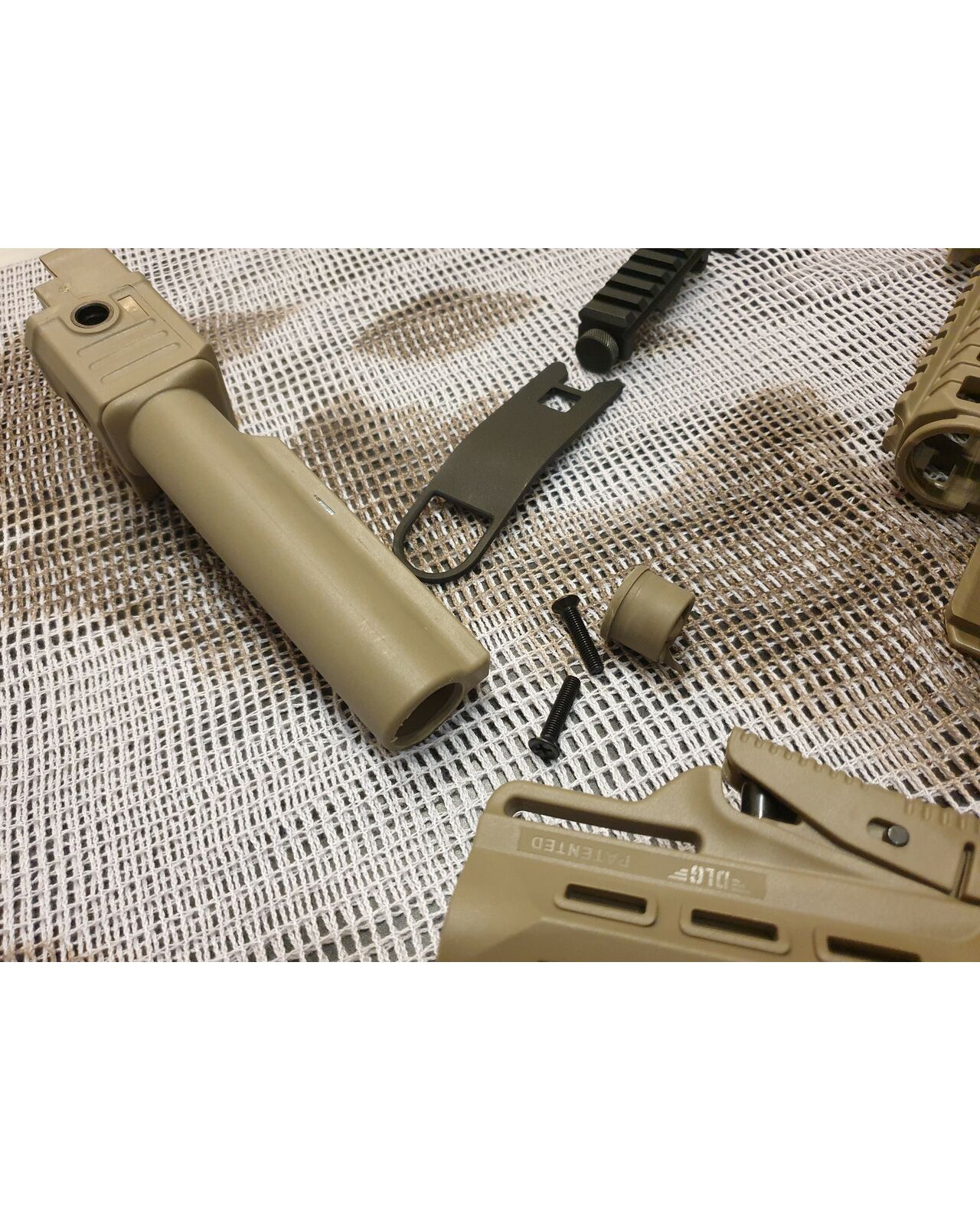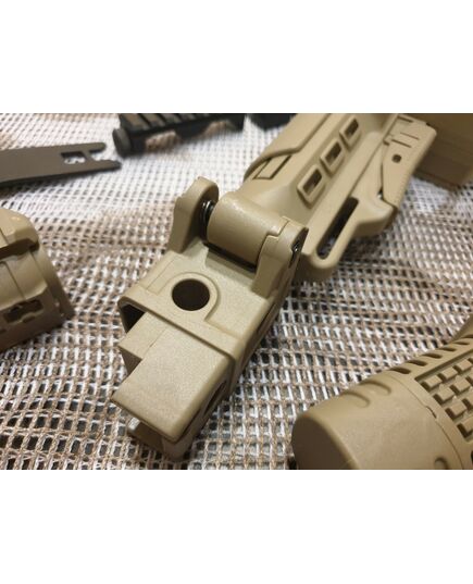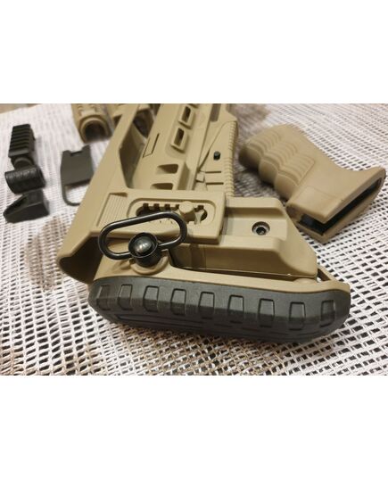 Комплект для апгрейда оружия от официального производителя аксессуаров для стрелкового оружия, фирмы DLG Tactical. Набор состоит из следующих компонентов: цевье; накладка на газовую трубку; прорезиненная пистолетная рукоять; ручка переноски огня и антабка; планка на целик для установки коллиматорных прицелов; тромикс на затвор; буфер отдачи и стальная антабка для складного приклада; складной в левую сторону телескопический приклад с регулируемой щекой. Доступный в цвете койот. Все монтажные саморезы в комплекте. Подходит на АК74. Идеальная замена штатного "весла" и цевья с накладкой на газовую трубку. На прикладе установлена быстросъемная антабка. Не люфтит, качественный пластик.Обвес изготовлен из термостойкого высококачественного армированного полимера.