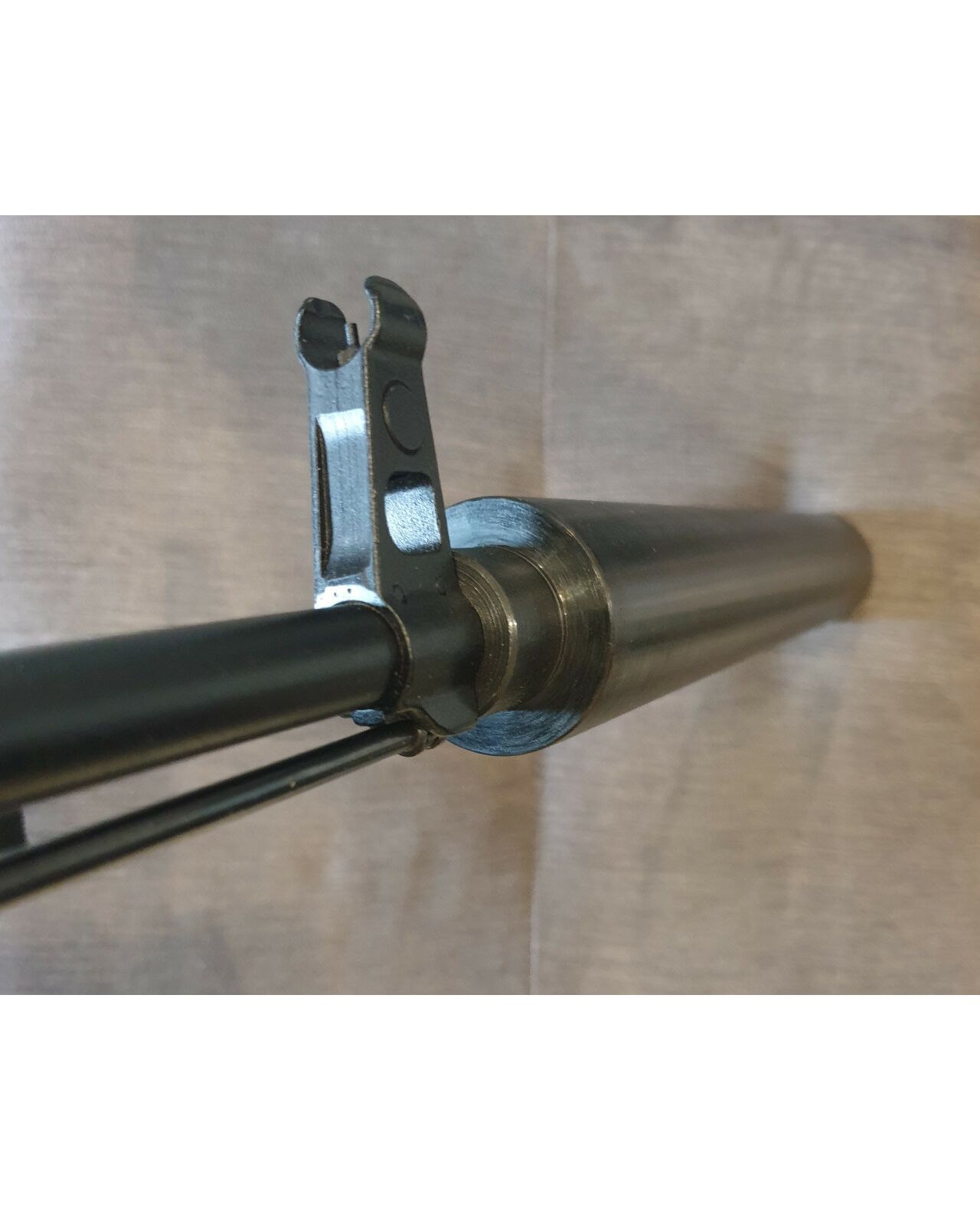 Глушитель не разборной 7.62 предназначен для снижения уровня звука выстрела автомата калашникова. Проверен временем , надежен, рабочий 100%. Звук становится тише на 60%. МОЖНО СТРЕЛЯТЬ КОРОТКОЙ ОЧЕРЕДЬЮ. Но не злоупотреблять этим, тогда он будет работать должным образом долго и хорошо! Длинна 310мм Диаметр 45мм Вес 750 грамм Материал сталь 20. Перегородок 25шт. Присоеденительный размер М 14 x 1 LH