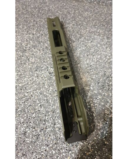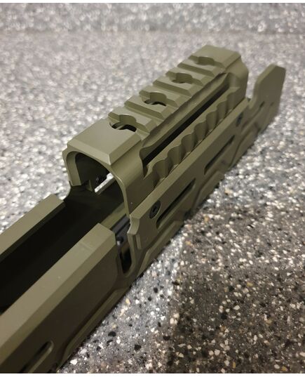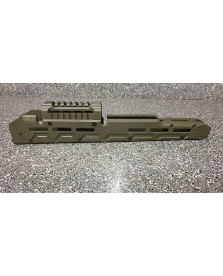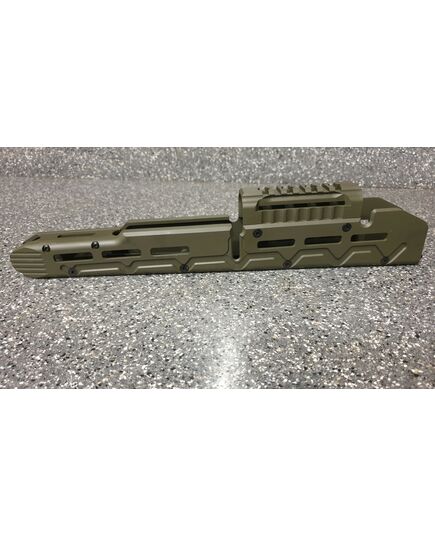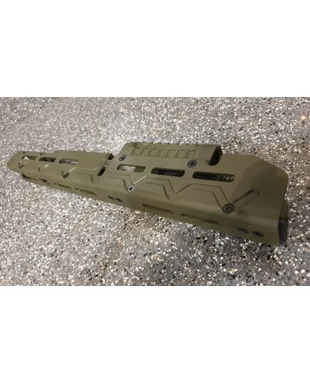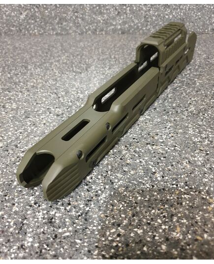Цевье тактическое для карабинов на базе АК длинное от фирмы МЕ. Данная система позволяет надёжно решить проблему установки коллиматорных прицелов а также тактических аксессуаров (ЛЦУ, фонарь, рукоятка переноса огня). Простая установка не требующая оружейной мастерской (устанавливается вместо штатного цевья ), не мешает использованию механических прицельных приспособлений. Высокопрочная конструкция из авиационного алюминия обеспечит долговечную службу изделия и отсутствие тепловых деформации и изгибов при самых жёстких условиях эксплуатации. Интегрированная планка пикатини сверху для установки коллиматорного прицела. Наличие системы M-Lok позволяет установить дополнительные планки пикатини для установки сошек, тактического фонаря или ЛЦУ при необходимости. Технические характеристики: вес 398 гр. длинна 355 мм ширина 38 высота 72 мм материал авиационный алюминий покрытие Cerakote цвет олива.