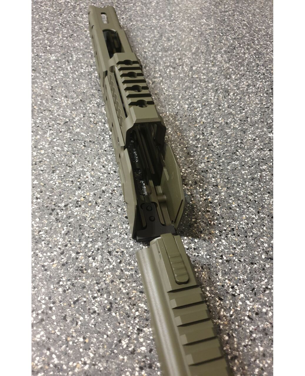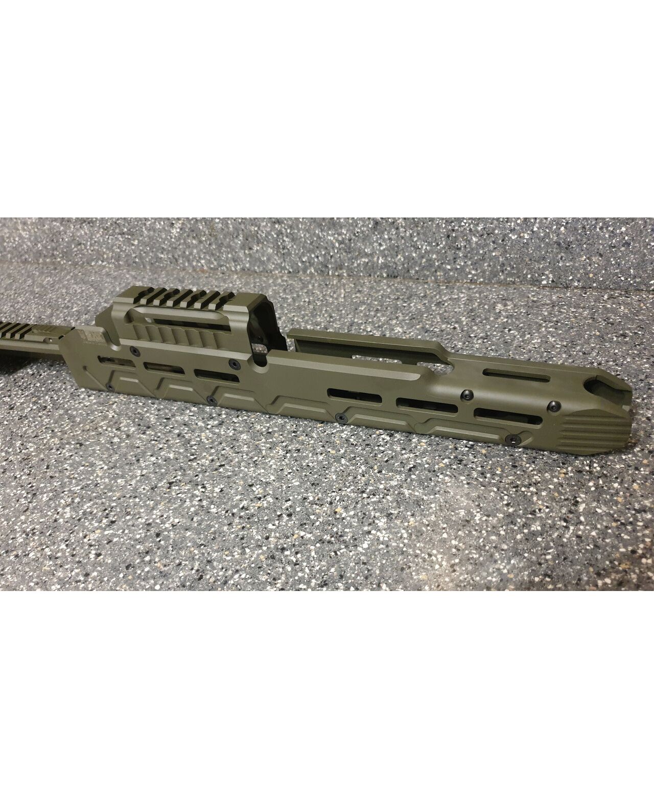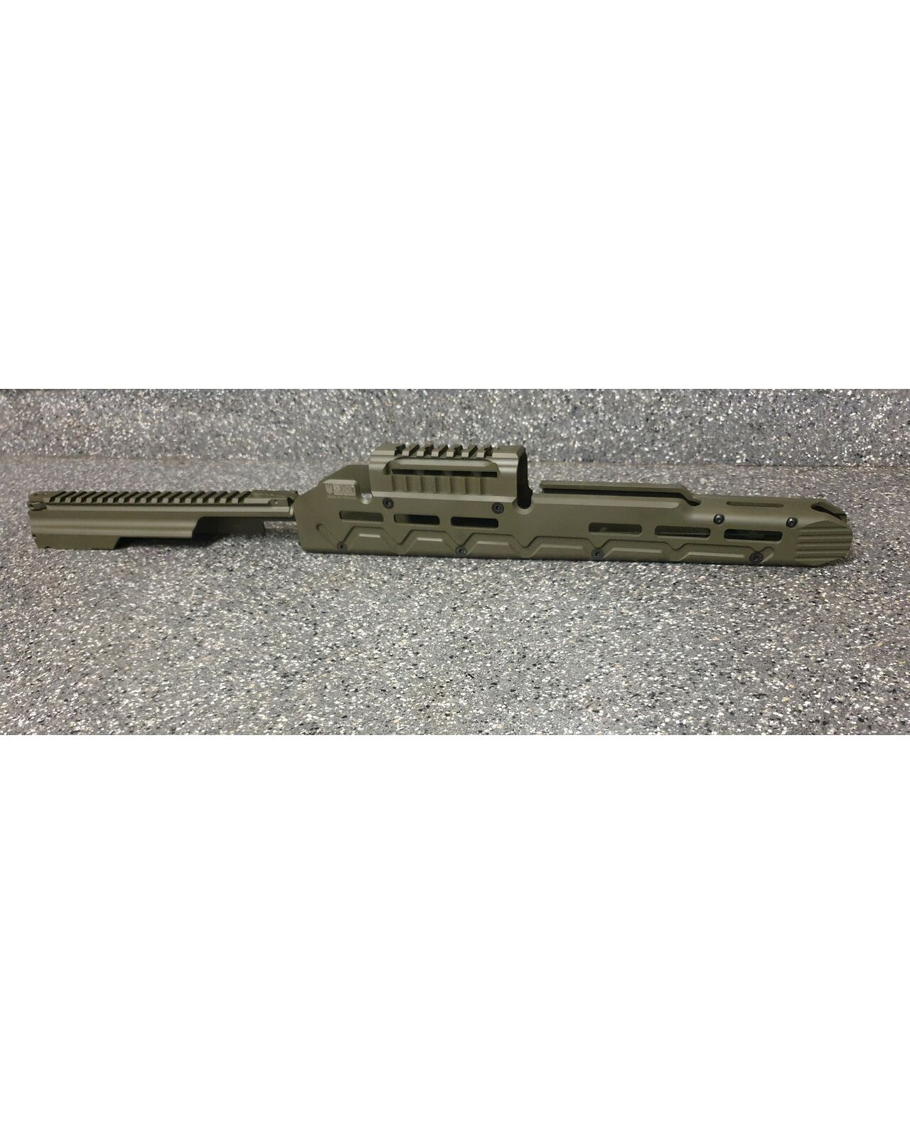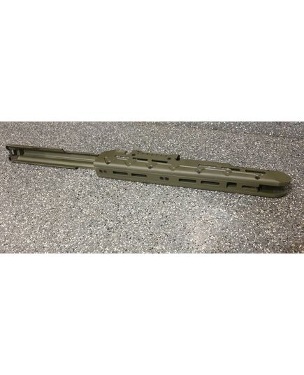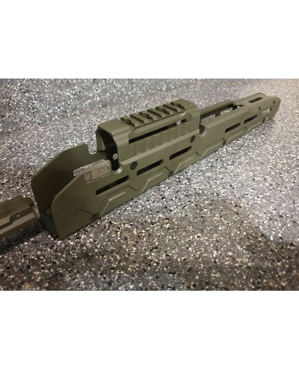 Набор для тактического тюнинга автоматов на базе АК ( автомат Калашникова). Набор состоит из крышки ствольной коробки с планкой пикатини, выполненной из цельного куска авиационного алюминия и алюминиевого тактического, длинного цевья по всей длинне ствола. Набор для тюнинга облегчит установку оптических, коллиматорных, тепловизионных прицелов. А длинное облегчённое цевьё добавит удобства удерживания автомата калашникова в разных удобных для вас положениях, что скажется с положительной стороны на кучности и удобстве работы с оружием. Набор для тюнинга АК состоит: 1) Крышка ствольной коробки с планкой Пикатини для установки коллиматорных и оптических прицелов на охотничьи карабины Сайга быстросъемная. Модернизированная крышка позволяет оставить родные механические приспособления. Основными плюсами этого изделия являются эргономичность, прочность и небольшой вес. Масса крышки составляет 160 грамм. Планка Пикатини, размещенная непосредственно на крышке и являющаяся с ней монолитным целым позволяет решить основную проблему охотничьих карабинов Сайга - установку коллиматорных или оптических прицелов на комфортном расстоянии от глаза. Крышка целиком фрезерована из цельной заготовки из авиационного алюминиевого сплава 2024T, что обеспечивает точность изготовления, прочность и небольшой вес изделия. Установка крышки осуществляется также как и родной крышки ствольной коробки, за исключением того что в заднее части имеется оригинальная конструкция фиксации кнопки возвратной пружины. В результате чего отсутствуют люфты и не изменяется СТП при снятии и установки крышки. Технические параметры: Прецизионная фрезеровка из цельной алюминиевой заготовки. Используется высокопрочный алюминиевый сплав марки 2024Т. Позволяет решить проблему с размещением оптических прицелов на карабинах семейства АК на комфортном от глаза расстоянии;. Не препятствует быстрому доступу к узлам УСМ и не мешает чистке карабина; Обеспечивает возврат в "ноль" (не требует повторной пристрелки) при установке/снятии. Простая установка не требующая специалиста; Масса: 160гр. Цвет олива. 2) Цевье тактическое для карабинов на базе АК длинное от фирмы МЕ. Данная система позволяет надёжно решить проблему установки коллиматорных прицелов а также тактических аксессуаров (ЛЦУ, фонарь, рукоятка переноса огня). Простая установка не требующая оружейной мастерской (устанавливается вместо штатного цевья ), не мешает использованию механических прицельных приспособлений. Высокопрочная конструкция из авиационного алюминия обеспечит долговечную службу изделия и отсутствие тепловых деформации и изгибов при самых жёстких условиях эксплуатации. Интегрированная планка пикатини сверху для установки коллиматорного прицела. Наличие системы M-Lok позволяет установить дополнительные планки пикатини для установки сошек, тактического фонаря или ЛЦУ при необходимости. Технические характеристики: вес 398 гр. длинна 355 мм ширина 38 высота 72 мм материал авиационный алюминий покрытие Cerakote цвет олива.
