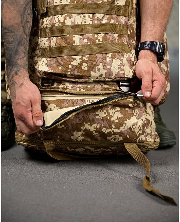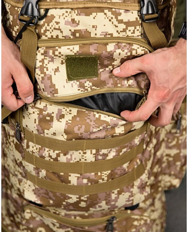 Обʼєм: 50 літрів Розміри: 65х45х20 см Одне велике загальне відділення з клапаном Два кишені на блискавці на фронтальній стороні Кишеня на блискавці всередині клапана основного відділення Два бокові кишені на блискавці