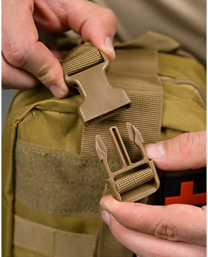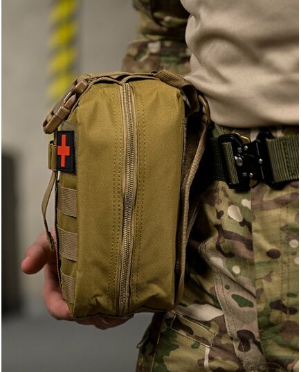 Підсумок-Аптечка закривається на застібку «блискавка» яка дозволяє швидко розкрити Підсумок-Аптечка і отримати зручний доступ до вмісту.
