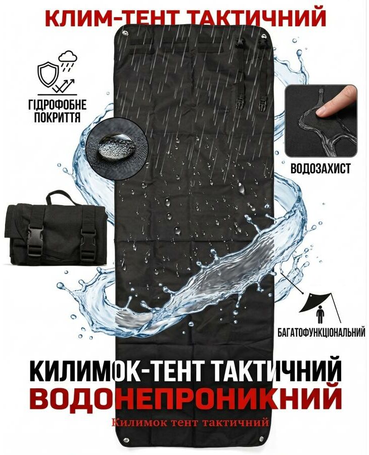 Коврик тент тактический водонепроницаемый Молли чорный ПП7882