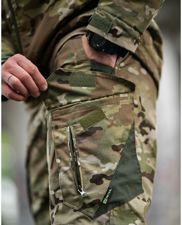 Материал — Rip-Stop (60% хлопок, 40% нейлон) с водоотталкивающей пропиткой. Ткань прочная, не рвётся и не пропускает влагу.