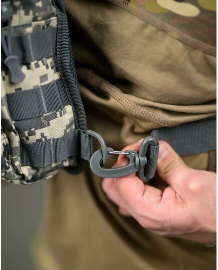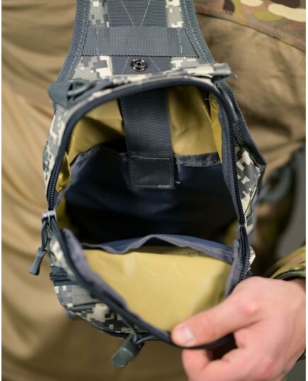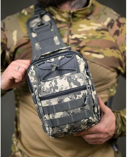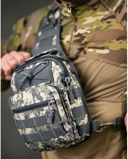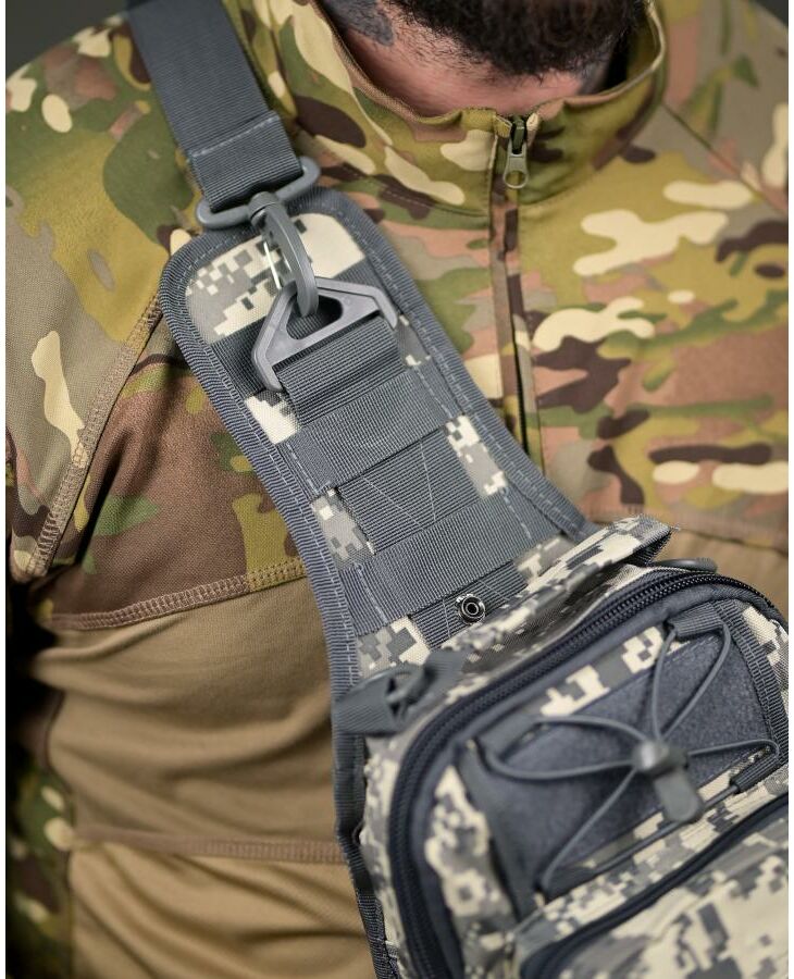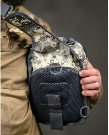 Регулируемый плечевой ремень позволяет носить сумку на любой стороне, а система MOLLE даёт возможность крепления дополнительного снаряжения.