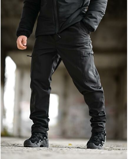 Штаны выполнены из софтшелла с внутренним флисом, обеспечивают тепло и свободу движения.