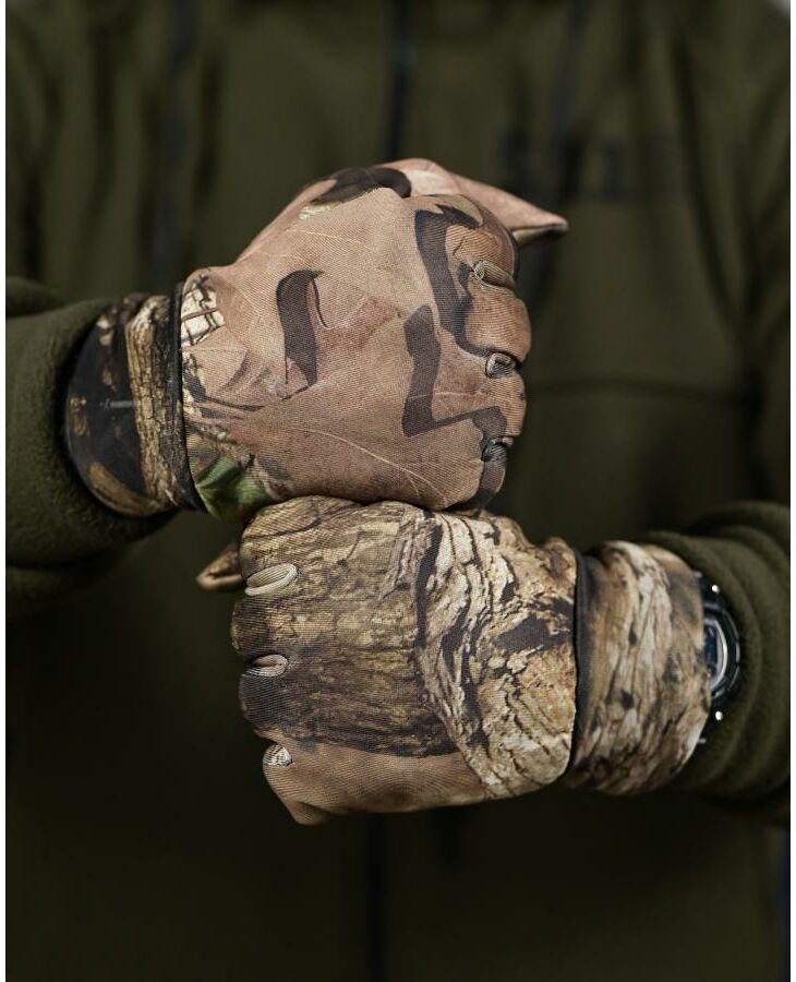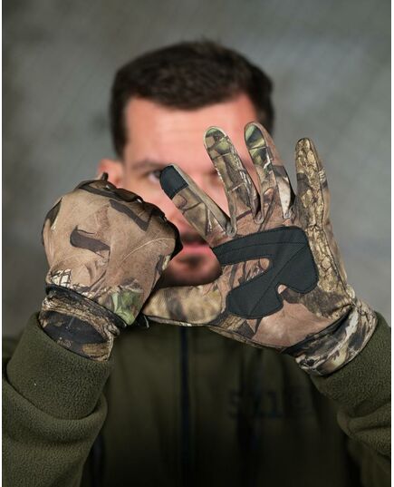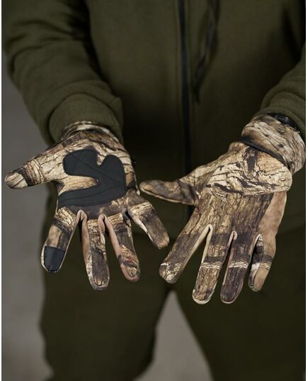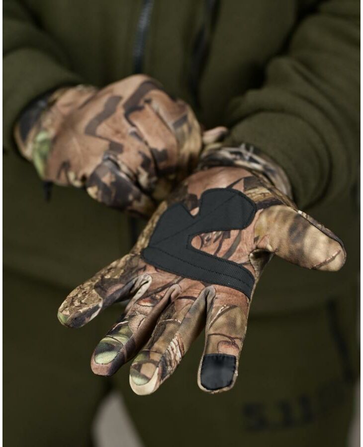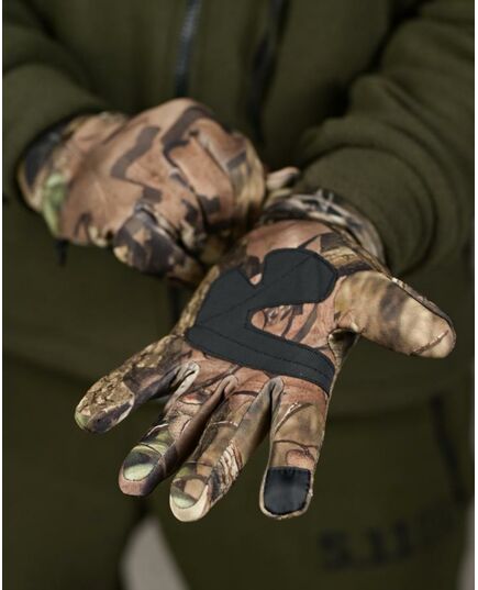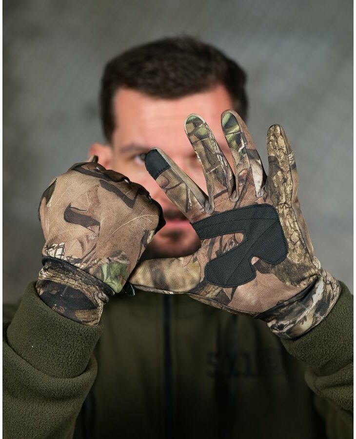 Антискользящие накладки на ладонях обеспечивают прочный и уверенный захват инструмента, оружия, руля или экипировки.