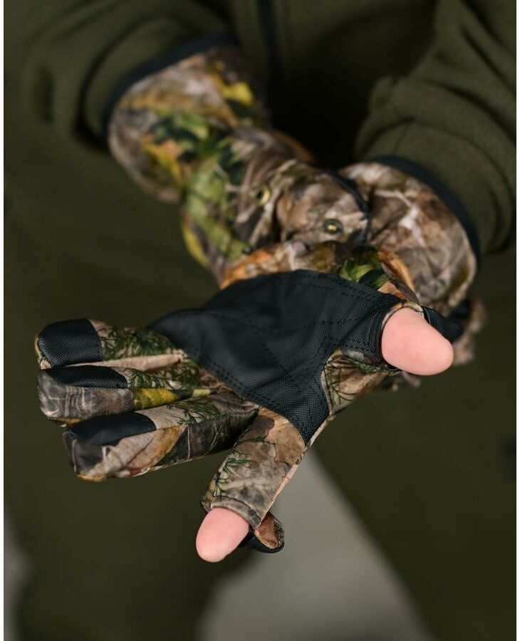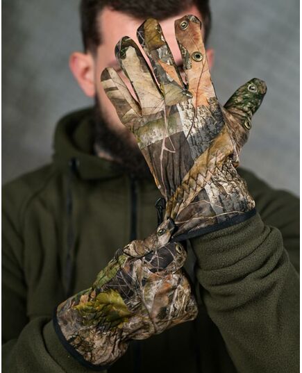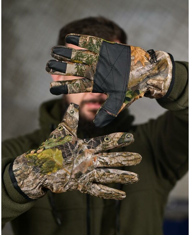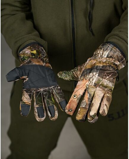 Антискользящие накладки на ладонях обеспечивают прочный и уверенный захват инструмента, оружия, руля или экипировки.