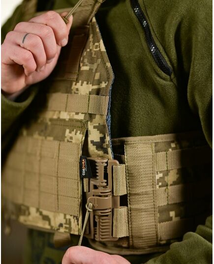 Это ускоряет снятие/надевание плитоноски и повышает безопасность.