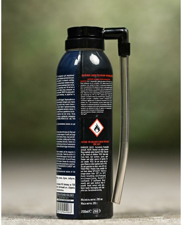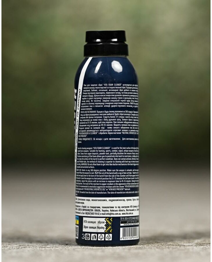 Результат реакции на остатки меди – синий цвет пены или патчи. При сильных загрязнениях повторите процесс при увеличении времени выдержки до 45-55 минут. После применения рекомендуется нейтрализовать остатки пены с помощью очистителя High Tech Aerosol Degreaser & Cleaner и обработать оружие маслом High Tech Aerosol Neutral Synthetic Oil или High Tech Aerosol Rust Prevent.