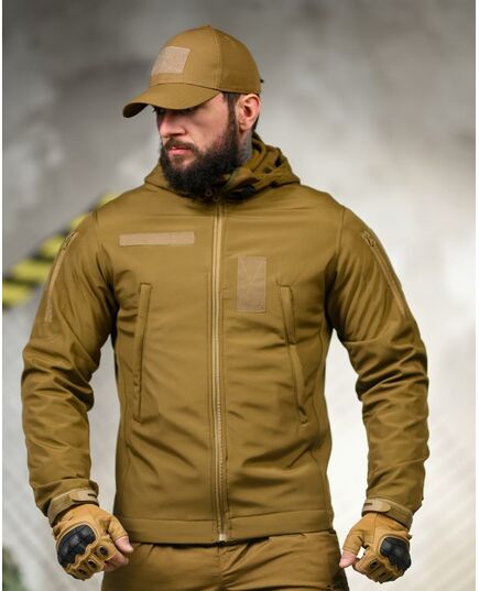 Функциональная куртка из софтшелла с защитой от ветра и влаги. Манжеты на хлястиках, утяжки по низу, админ-карманы и липучки под шевроны. Полномерные размеры.