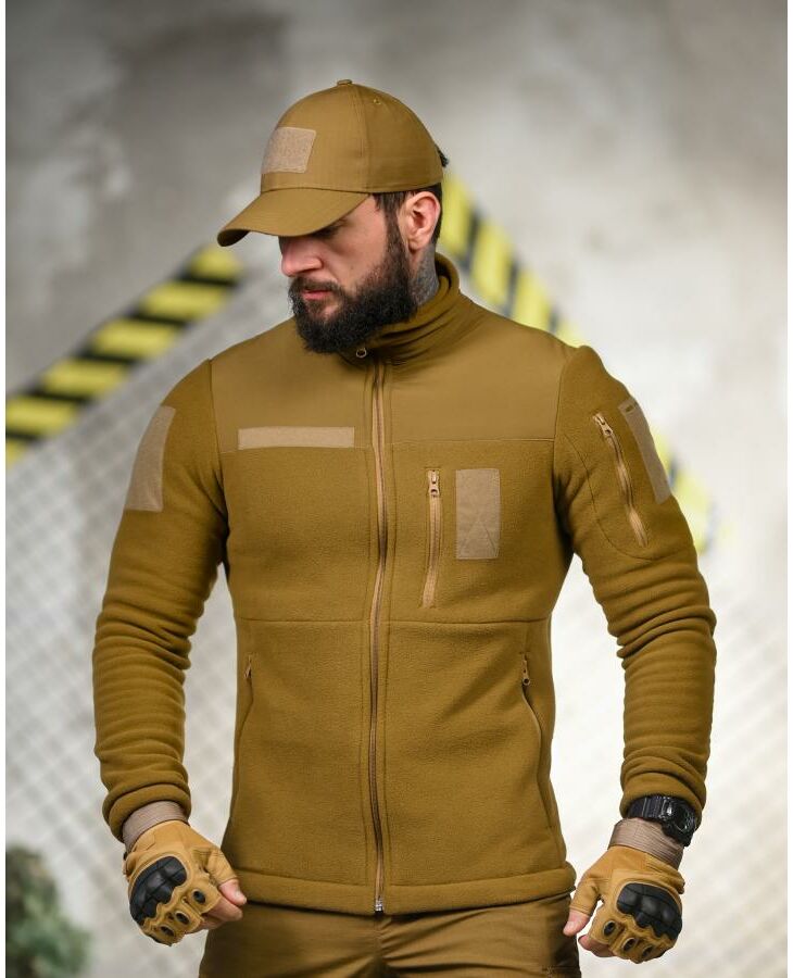 Тёплая флисовка из плотного POLAR 280 с усилениями из плащевки. Подходит под бронежилет или как верхний слой. Липучки под шевроны, анатомический крой.