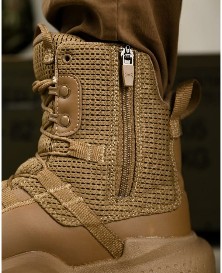 Боковая молния позволяет быстро обуваться без лишних движений, а высокая посадка дополнительно фиксирует стопу.