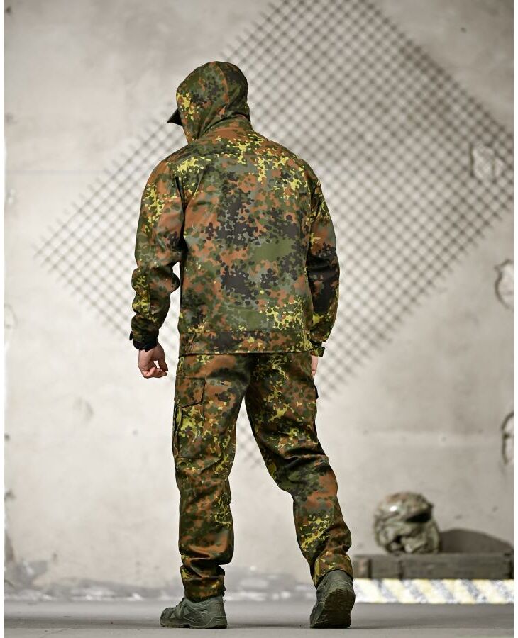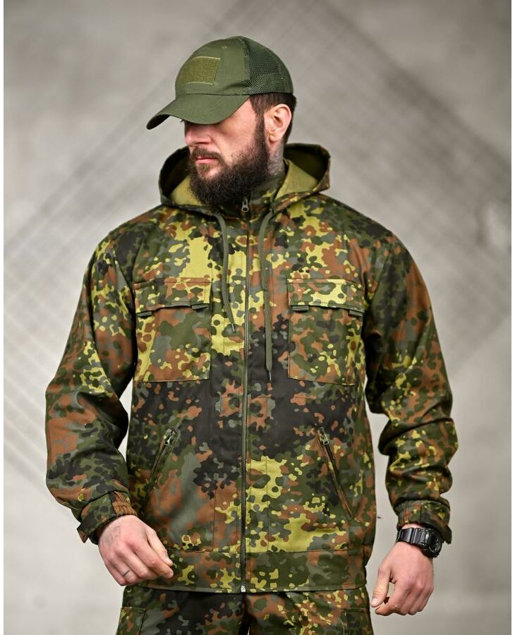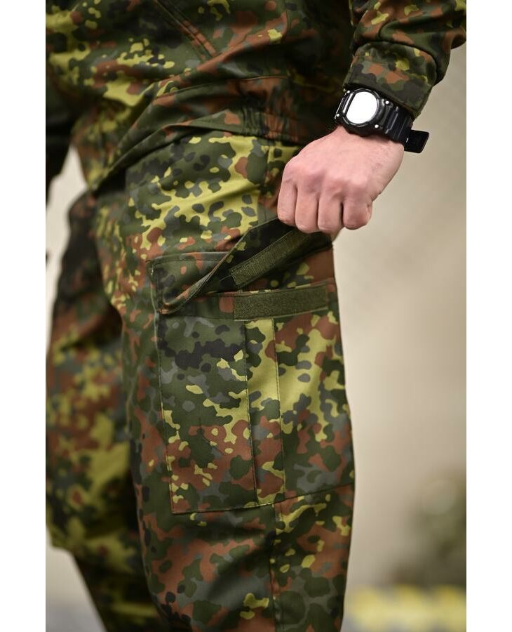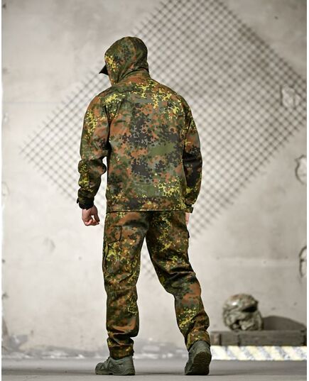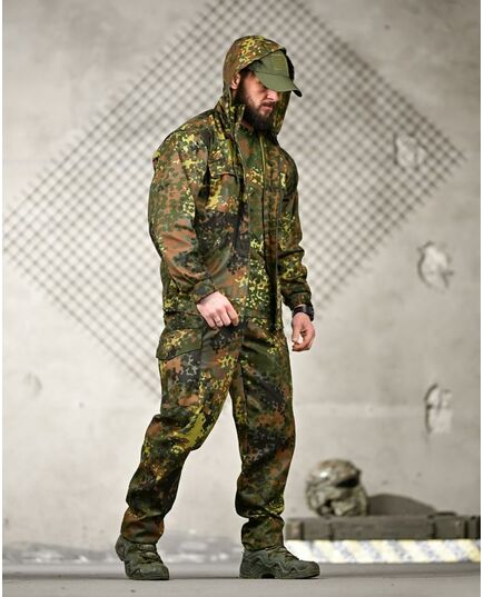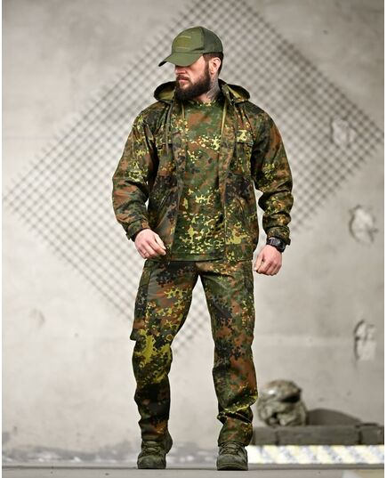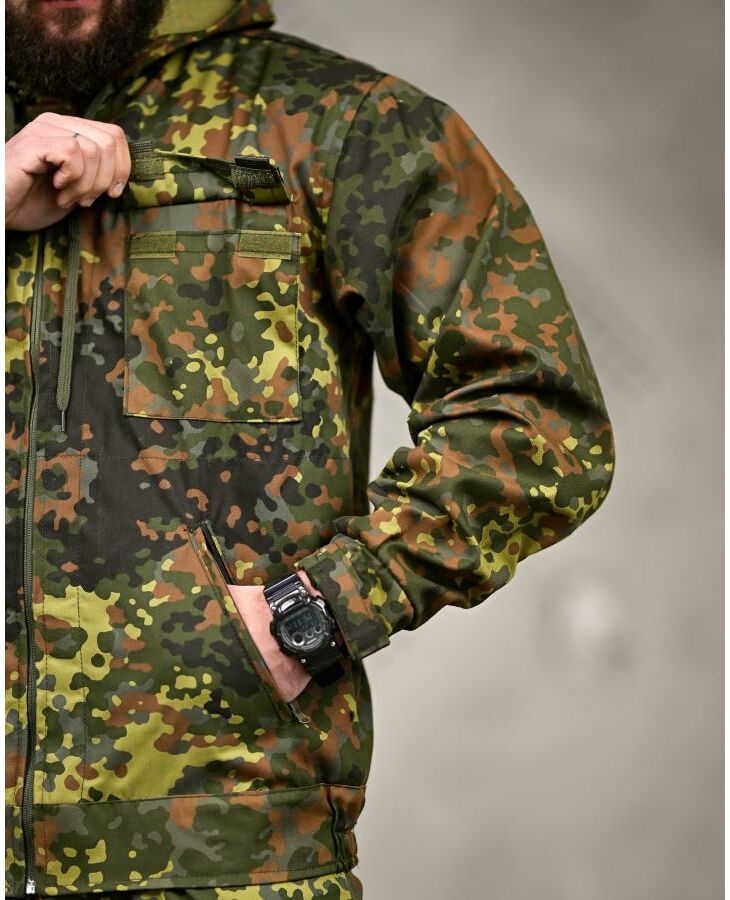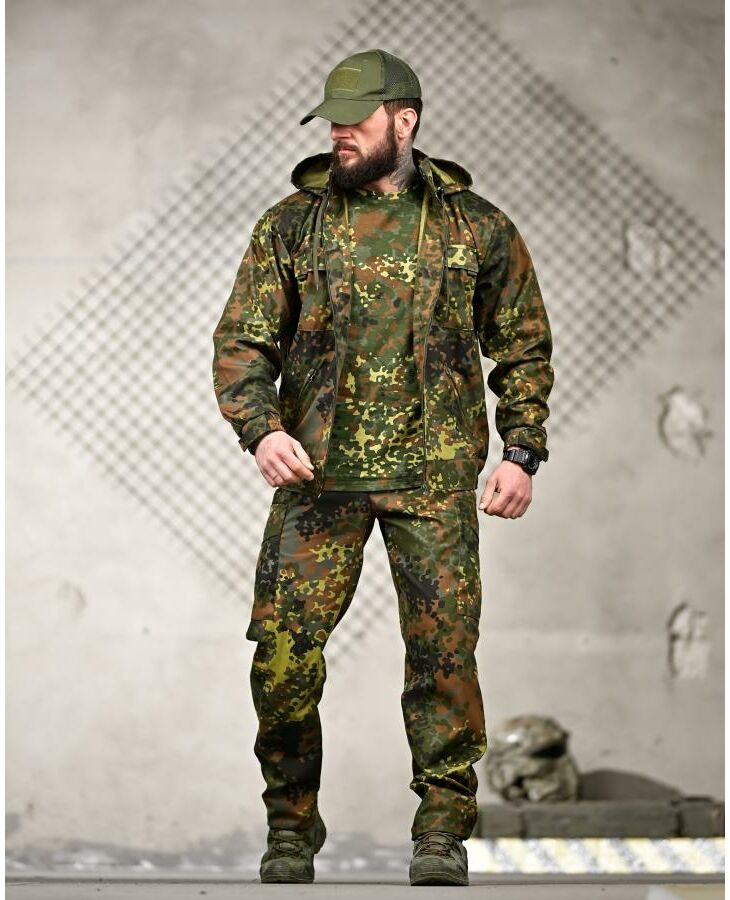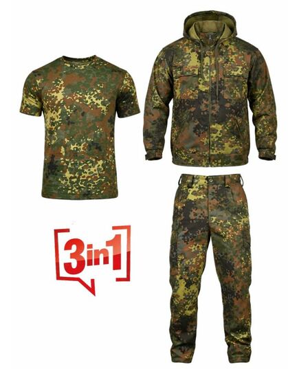 Практичный комплект для повседневного использования, тренировок и активного отдыха. В набор входит куртка, штаны и футболка в едином камуфляжном стиле.