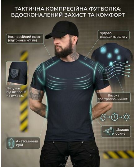 Функциональная тактическая футболка с компрессионным эффектом, разработанная для активных нагрузок и повседневного использования. Плотно садится по телу, подчёркивает форму и не сковывает движения.