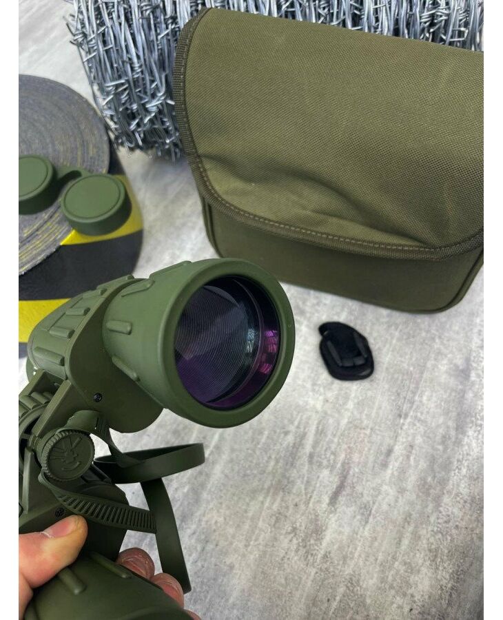 Серед них відзначимо текстильну сумку з пристібним наплечним ремінцем. Чохол – спрощеної конструкції, без поролонових вставок, пофарбований у захисний оливковий колір. До бінокля також додається ремінець з стропи, що дозволяє підвісити його на шию, салфетка з мікрофібри, дві пари захисних кришок для оптики та інструкція на різних мовах.