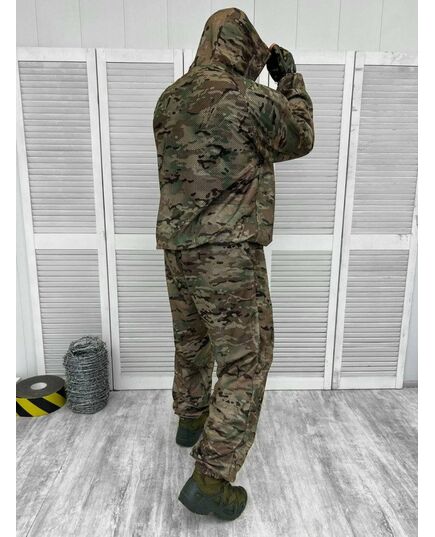 Костюм виконаний з надійної, антимоскітної сітки яка має унікальну конструкцію Grid in Grid, це плетіння із дуже маленькими відчинками різної геометрії, що унеможливлює проникнення москітів, кліщів, та інших насекомих. На рукавах присутні утяжки із пластиковими фіксаторами, а на капюшоні сітка регулюється застібкою-блискавкою.