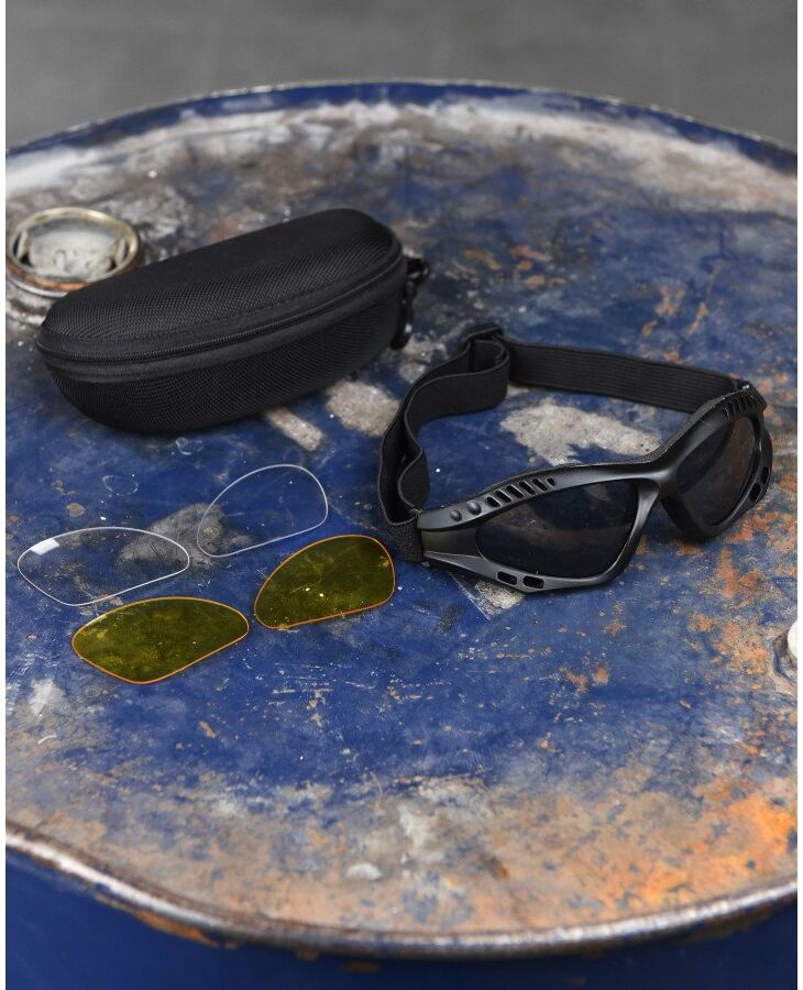 Можна використовувати за будь-якої погоди. Лінзи мають спеціальне покриття, яке забезпечує антитуманний захист, не запітніють, захист від дрібних подряпин. Захищають від уламків, бруду, землі. Мають широкий кут зору завдяки вигнутій формі. Регульований ремінь дозволяє   зручно кріпиться як на голову, так і на шолом. При використанні зверху шолома рекомендується використовувати чохол ( входить до комплекту)