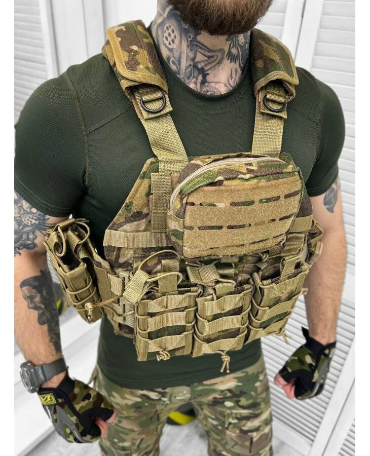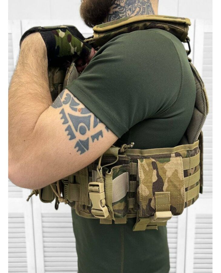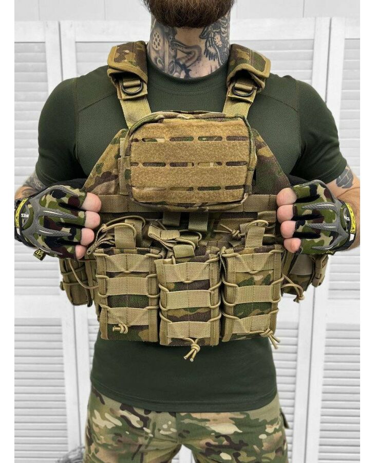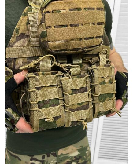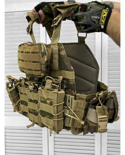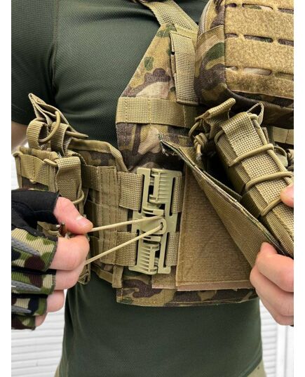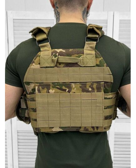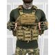 - Матеріал: тканина – Cordura 1000D. Плитоноска виготовлена з міцної водонепроникної тканини Cordura і обладнана модульною системою знімних підсумків. Плитоноска вільно регулюється по висоті та об'єму (спереду та ззаду).