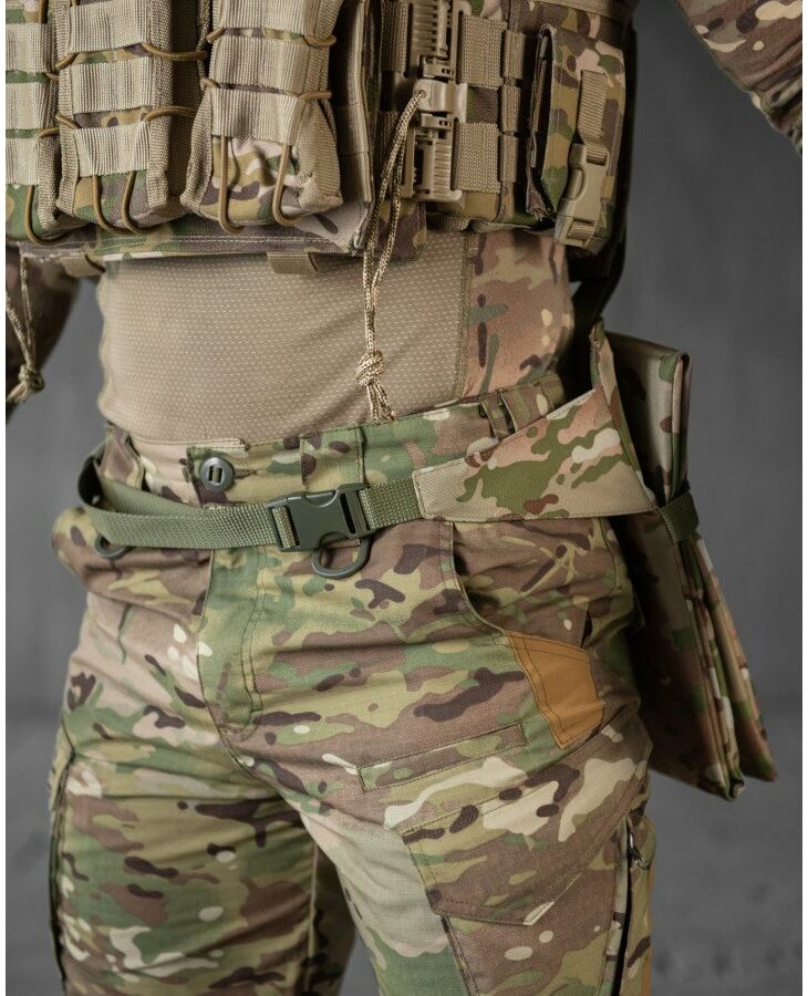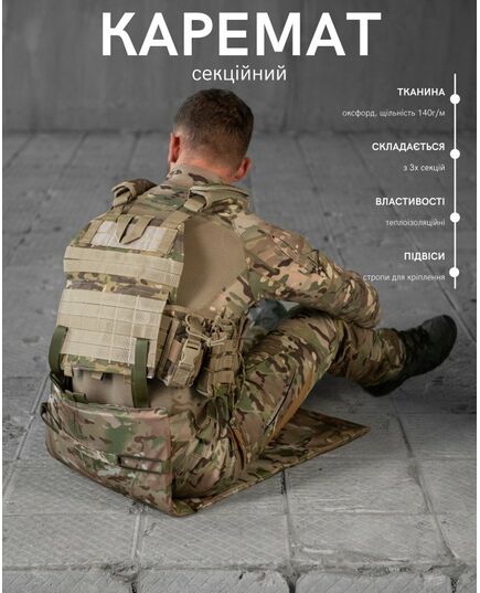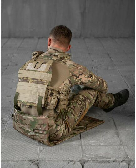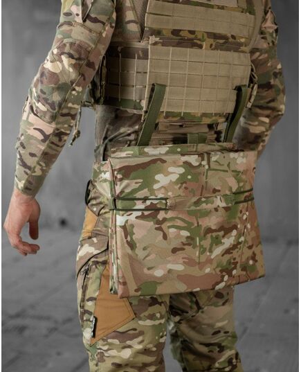 В якості буфера та утеплювача використовується ізолон підвищеної жорсткості товщиною 10мм. Підвіси зі стропи для кріплення на MOLLE або за ремінь. Додаткова стропа з фастексом для горизонтальної фіксації на поясі