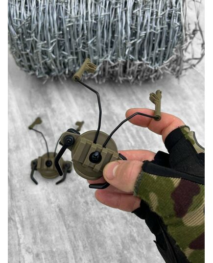 Увага! Дане кріплення гарантує коректне встановлення активних навушників для стрільби ОМ Peltor, Walker`s, Razor Slim та Earmor М31/М на шолом каску. Використання цього кріплення для інших видів навушників виробником не передбачено. Для встановлення адаптера на навушники Opsmen Earmor М31, М32 та Walker`s Razor Slim необхідно витягти металеві напрямні з пластикових тримачів кріплення та вставити їх в оригінальні тримачі Earmor та Walker`s. Тобто, пластикові тримачі на торцях даного кріплення використовувати не потрібно – використовуються оригінальні, не знімаючи їх із бічних навушників. Для навушників Peltor кріплення встановлюється цілком – із пластиковими тримачами. Каска і рейки в комплект НЕ входять і використовуються на фото тільки для демонстрації кріплення.