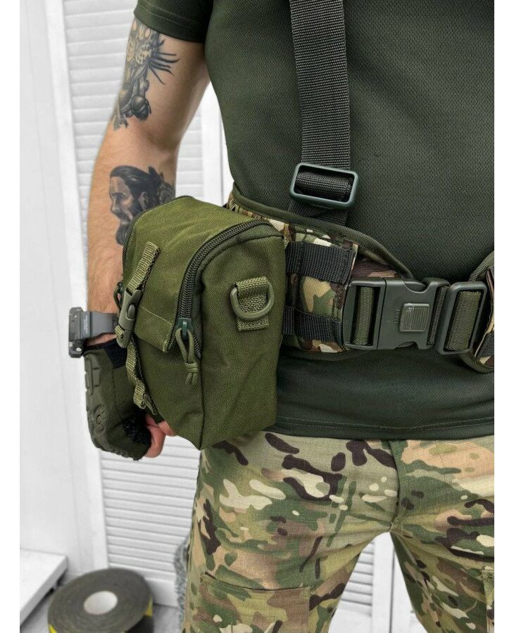 Сумка має місткий основний відділ і дві зовнішні кишені, одна закривається на зручний фастекс, а друга на блискавку. Широка плечова лямка кріпиться до сумки зручними карабінами. Дану модель можна носити через плече, прикріпити до пояса або використовувати як підсумок. все це можливо завдяки системі кріплення Molle. Більше того, до цієї сумки можна прикріпити додаткові аксесуари або підсумки, це дозволять зробити нашиті бічні нейлонові стропи. діях, туризмі, полюванні та риболовлі. ремінь на карабінах