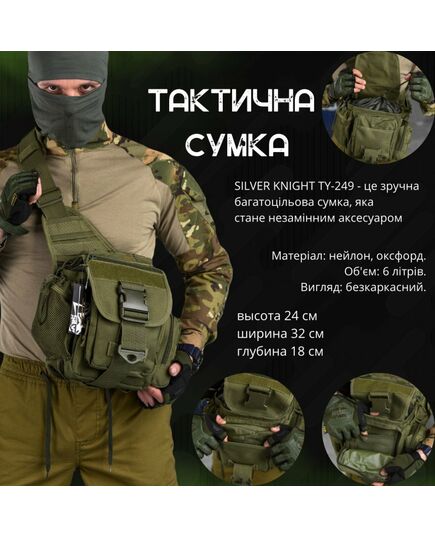 SILVER KNIGHT TY-249 - це зручна багатоцільова сумка, яка стане незамінним аксесуаром для активного відпочинку, військово-спортивних ігор та туристичних походів .