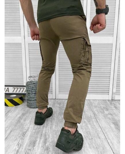 Дизайн даної моделі створень у стилі штанів джогер та який дозволяє їх носити як у спортивних, так і у повсякденних образах. Вони підходять для багатьох стилів одягу - від спортивного до кежуалу (повсякденного). Особливістю даної моделі штанів є еластичні манжети на штанинах, що забезпечують більш точну посадку, особливо якщо брати до уваги аспект зростання користувача. Сам крій штанів дуже зручний, підлаштовується до фігур різних типів та забезпечує вільність у рухах. Крім того, посилення додатковою кулею тканини над колінами дозволяють штанам витримувати більший тиск при активних рухах та забезпечують більшу стійкість до зношування. Пояс оснащений широкими петлями для використання поясного ремня, що забезпечує надійну фіксацію. Основна застібка штанів – якісна молния та гудзик.