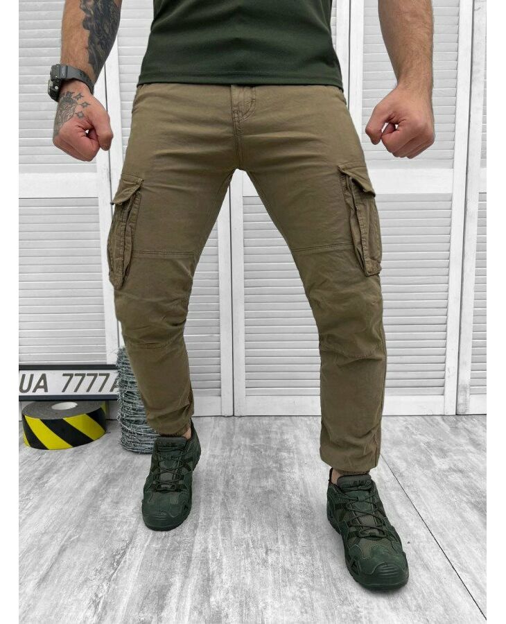 Забарвлення штанів – кольору Хакі, який є основним камуфляжним кольором та надзвичайно популярним серед користувачів, особливо за кілька останніх років. Колір Хакі – це нейтральний колір, який підходить до більшості інших кольорів і добре поєднується з ними, створюючи чудові образи. Також, цей колір є досить практичний та зручний у використанні, оскільки він не маркий та загрязнення виглядають незначними. Крім того, це часто використовуваний колір в одязі для зовнішніх активностей, таких як рибальство, полювання, туризм або піші прогулянки. Він може допомогти злитися з навколишнім середовищем, що може бути корисним для підвищення ефективності дій у таких умовах.