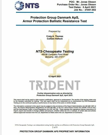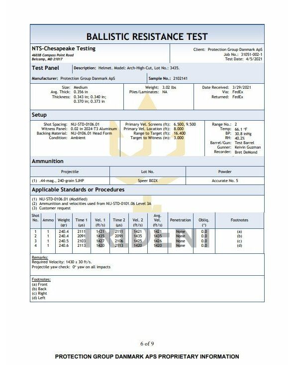 - НОВИЙ NIJ IIIA; Балалістичний тест V50 STANAG2920, 17 гран 700 м/с Зменшення BFD на 50% мод. 9 мм (HPW-TP-0401.01B IIIA)