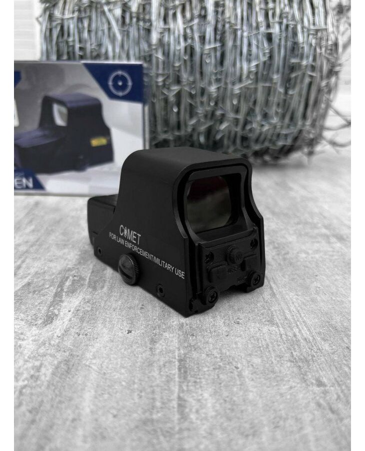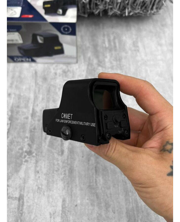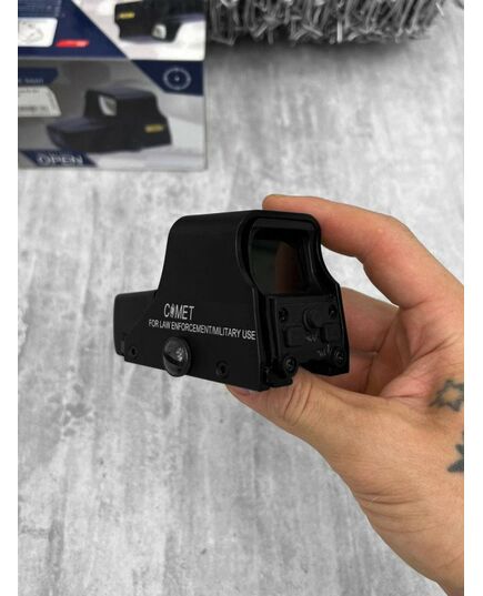 Коліматор типу ET 551 Theta Optics, коліматор ОПИС 551 коліматора Виготовлений з: металу Довжина: 105 мм Вага: 215 г Колір: чорний Колір точки: червоний/зелений Кріплення: ПІКАТИНІ, ВІРА АБО ЇХ АНАЛОГИ Розробник: ™ TO551 з червоною точкою, що живиться від чотирьох батарейок LR44, з дизайном на зразок голографічного прицілу. Дозволяє використовувати зелену або червону цільову точку для денних та нічних операцій. Точку прицілювання можна регулювати по горизонталі та вертикалі, вона також має кілька ступенів інтенсивності. Закріплений на стандартній рейці RIS 22 мм, коліматор дозволяє швидко та точно прицілюватись. Коліматор розташований у міцному металевому корпусі.