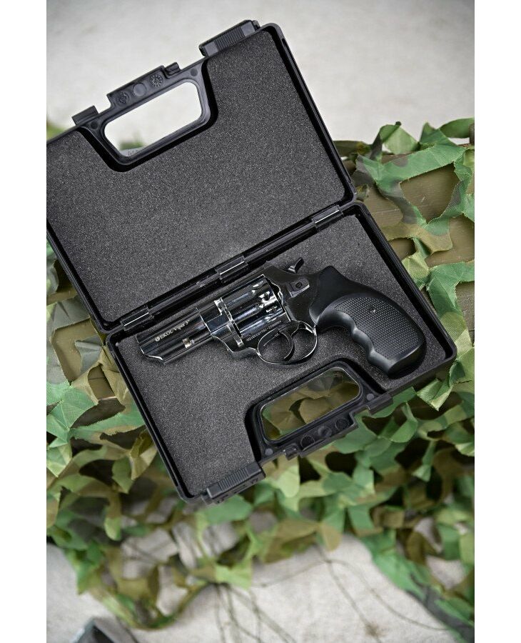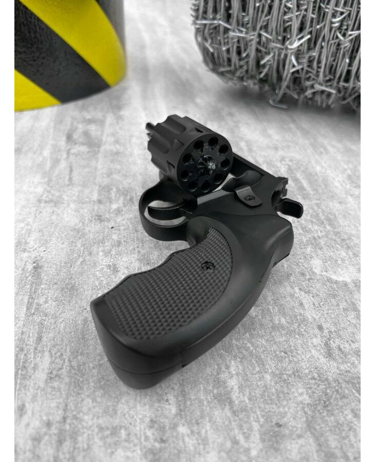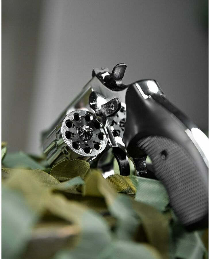 Габаритні розміри револьвера такі, що він чудово сидить у руці, збалансований і не завалюється при стрільбі. Довжина цього Флобера 200 мм, висота - 119 мм, а ширина по найширшій частині револьвера 36 міліметрів. Колір корпусу хром і чорний. Стовбур револьвера виконаний зі сталі, але не має нарізів. Калібр 4 мм, а енергія пострілу становить не більше 7,5 Дж. Ця характеристика дозволяє купувати револьвер особам, що досягли повноліття (18 років). Довжина ствола 3” – це 76,2 мм. На стовбурі є кожух на якому розташована мушка. Прицільне пристосування - не регульована планка і мушка. Планка кріпиться двома гвинтами до корпусу револьвера.