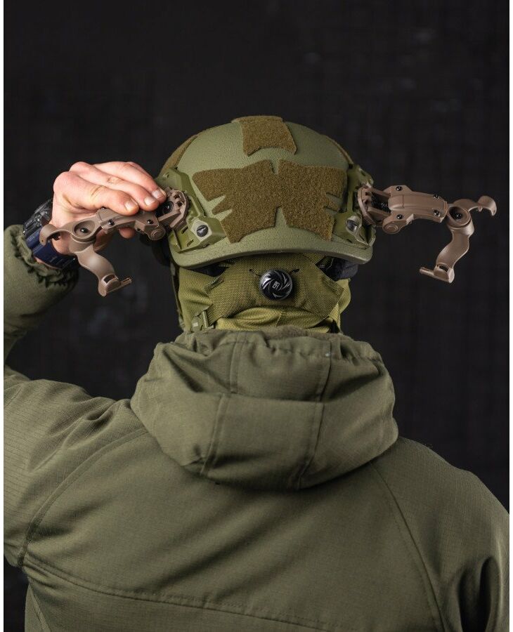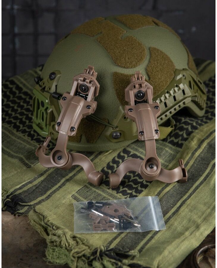- Howard Leight Impact Sport і навушники безпосередньо на шоломи типу FAST, TOR-D, ACH MICH та ін., що мають тип рейок ARC або Wendy M-LOK. Виготовлена з ударостійкого пластику поворотна панель дозволяє крутити муфти практично в будь-якому положенні. Цей адаптер нового покоління дозволяє не тільки зручно регулювати навушники по висоті, але й підтримує обертання на 360 градусів навколо кріпильної точки на шоломі для кращого налаштування, а також дозволяє індивідуально налаштувати чашки навушників завдяки кульовому кріпленню фіксатора чашки. Даний тип адаптера виготовлений за подобою знаменитої моделі бренду OPS-Core, максимально функціональний і надійний, що робить його одним із найкращих у своєму роді за зручністю використання та індивідуальними налаштуваннями. Сумісний як з рейковою системою типу ARC, так і M-LOK у моделях Team Wendy.