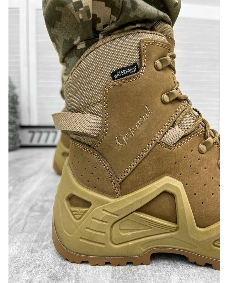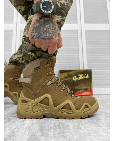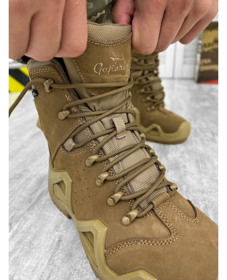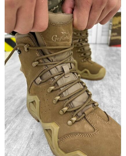 Gepard Titan Це універсальні, класичні полегшені тактичні черевики. Ці моделі мають всі необхідні характеристики взуття Gepard для весняно-осіннього сезону. Колір койот і високоякісні матеріали виділяють цю модель на загальній лінійці такого взуття, на першу сходинку.
