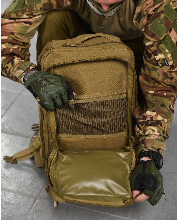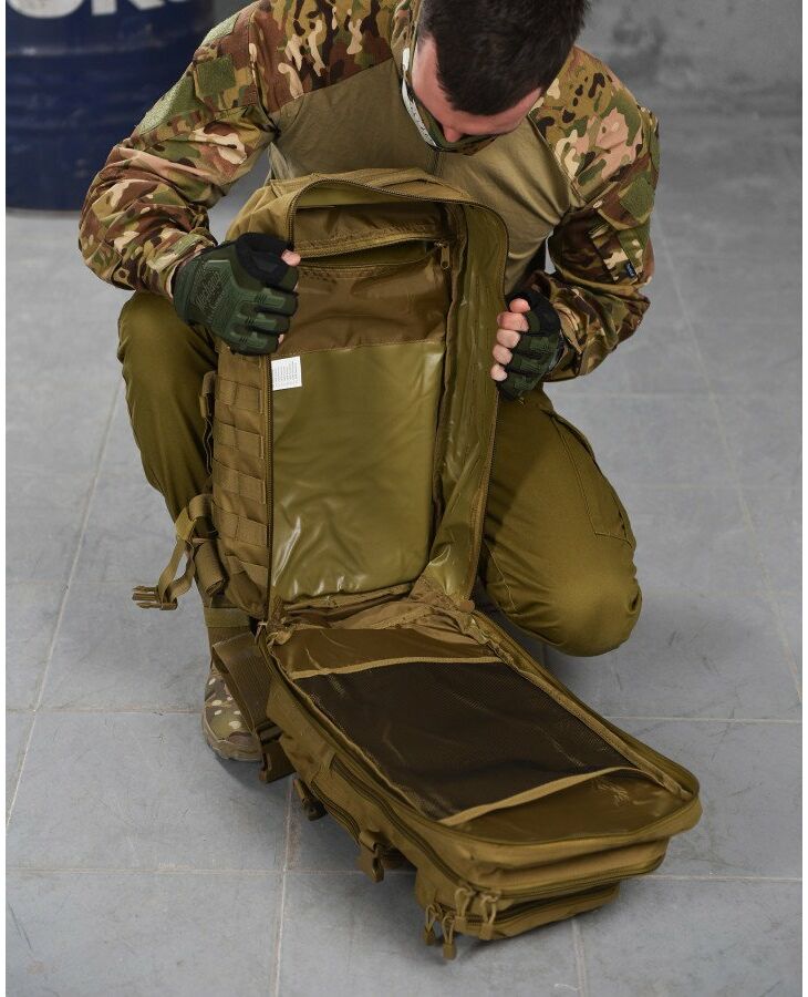 Рюкзак виготовлений з легкого надійного та повністю синтетичного матеріалу, який усередині має вологозахищене напилення з полівінілхлориду. Тому дана модель відрізняється стійкістю до опадів та вологого середовища. Для максимально можливого комфорту при користуванні цим рюкзаком, спинна частина та плечові лямки мають набивання з піни EVA. Для зручності користування, основну верхню ручку виготовлено з подвійного матеріалу і надійно пришито.