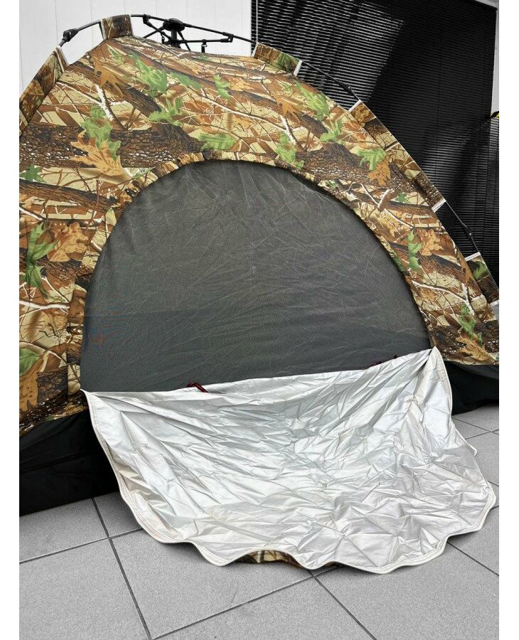 Легкий та зручний автоматичний намет. У складеному вигляді вона займає зовсім небагато місця і складається в невеликий чохол з ручками.