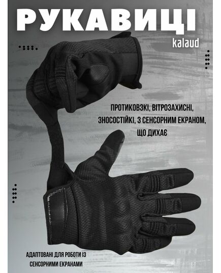 Високоякісні тактичні рукавички на повний палець – протиковзкі, вітрозахисні, зносостійкі, з сенсорним екраном, що дихає. Рукавички забезпечують гарне захоплення, захищають руку від порізів. Використовувати рукавички можна влітку, при високій вологості та при осінніх температурах – термоактивні. Завдяки вставкам на вказівних та великих пальцях вони адаптовані для роботи із сенсорними екранами. Верх рукавички виготовлений із багатошарової тканини із роздільною сіткою між шарами. Взимку матеріал затримує частки гарячого повітря, а влітку дихає і швидко випаровується вологу. Внутрішня частина дозволяє легко надягати рукавички і добре вбирає піт. Повітропроникність: поліестеровий сітчастий матеріал, що облягає, робить ваші руки гнучкими, зручними, пропускає повітря. Універсальний: відмінне армійське спорядження, велосипедні рукавички, рукавички для водіння, робочі рукавички для підйому та навантаження, військові рукавички, тактичні рукавички, бойові рукавички, штурмові рукавички