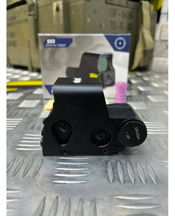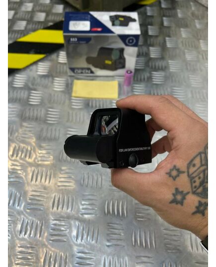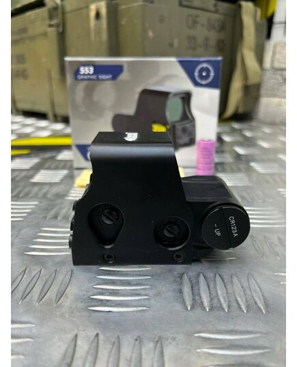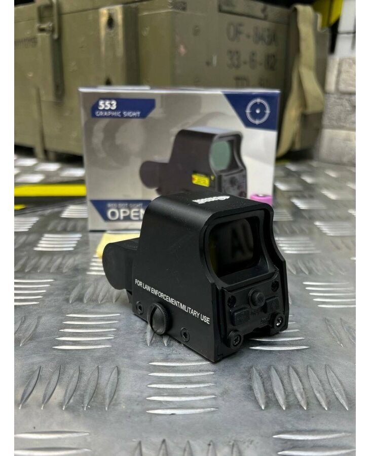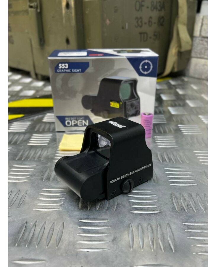 поле зору коліматора HD553 не обмежене і повністю відкрите. Обід приціла мінімально помітний, що дає стрілці можливість цілитися двома очима і контролювати ситуацію в процесі стрілянини; легше, компактніше і простіше закритих аналогів;