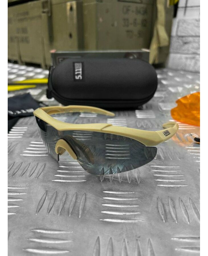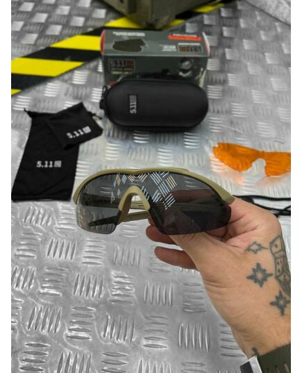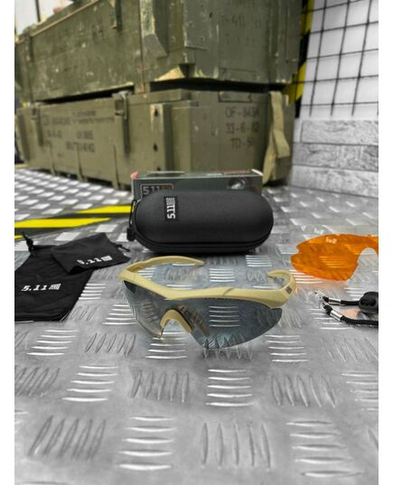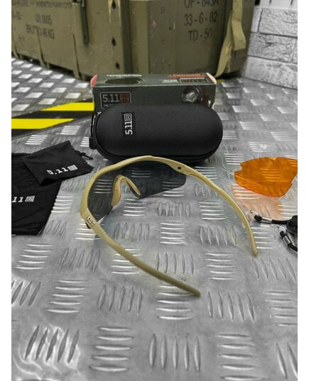 Тактичні балістичні захисні окуляри 5.11 FIVE ELEVEN 3 лінзи кайот ОР6102