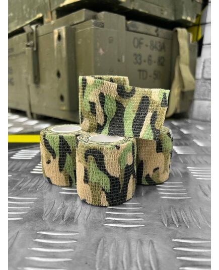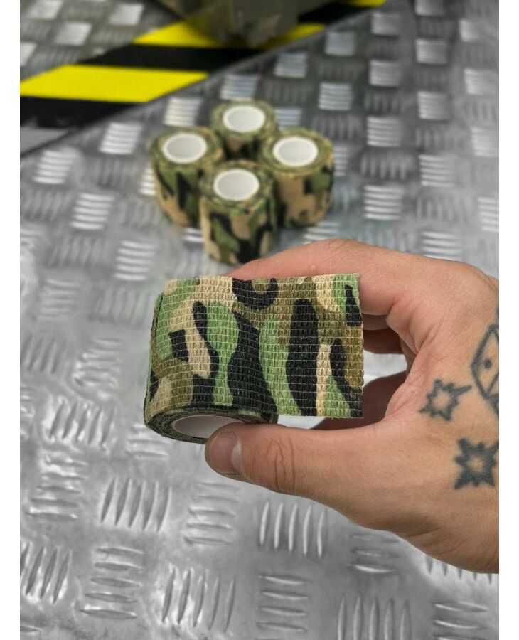 Камуфляжна стрічка - це ідеальний спосіб замаскувати вашу зброю або екіпірування. Ідеально підходить для тих, хто хоче розчинитися в дикій природі і замаскувати свою присутність. Стрічку можна використовувати для камуфлювання зброї, оптики (польових біноклів, прицілів), рукоятей ножів, ліхтарів, нашийників мисливських собак та іншого подібного. Вона захистить зброю від бруду, пилу та подряпин, а також допоможе звести нанівець брязкіт і брязкіт різних кріплень. Крім свого основного призначення (маскування), вона захищає руки від слизьких, холодних або гарячих поверхонь (не ковзає і не холодить руки ).
