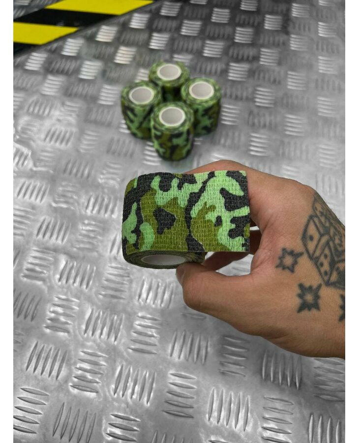Камуфляжна стрічка - це ідеальний спосіб замаскувати вашу зброю або екіпірування. Ідеально підходить для тих, хто хоче розчинитися в дикій природі і замаскувати свою присутність. Стрічку можна використовувати для камуфлювання зброї, оптики (польових біноклів, прицілів), рукоятей ножів, ліхтарів, нашийників мисливських собак та іншого подібного. Вона захистить зброю від бруду, пилу та подряпин, а також допоможе звести нанівець брязкіт і брязкіт різних кріплень. Крім свого основного призначення (маскування), вона захищає руки від слизьких, холодних або гарячих поверхонь (не ковзає і не холодить руки ).